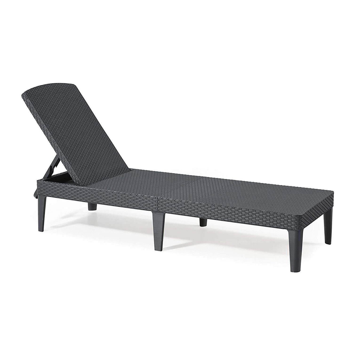 Die moderne und komfortable Sonnenliege ist eine perfekte Ergänzung für Ihr Zuhause und Wohnung um entspannt frische Luft und sonniges Wetter im Gartenbereich genießen zu können. Die anthrazitfarbene und in Rattan-Optik designte Liege zeichnet sich durch eine leicht verstaubare, sechs-beinige Konstruktion in Verbindung mit einer neigbaren Rückenlehne aus.