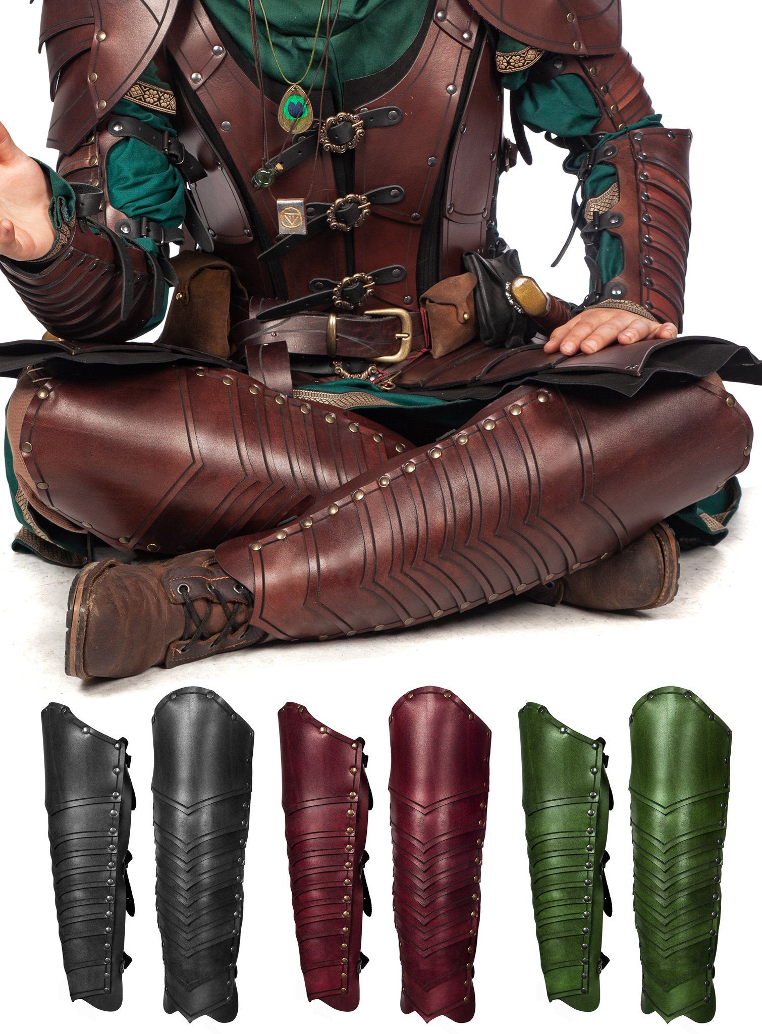 Unsere Beinschienen - Drachenrücken sind definitiv kein reines Dekorüstungsteil. Die vernieteten Platten ergeben zusammen eine massive Lederschicht, die an vielen Stellen fast 1 cm dick ist. Zusätzlich ist zwischen den Segmenten und der Deckplatte ein Luftpolster, das Schläge extrem abfedert. Da kommt so schnell nichts durch. Zusammen mit den Armschienen - Drachenrücken und den Lederschultern - Drachenrücken bieten sie zuverlässigen Schutz in Larp-Kämpfen.