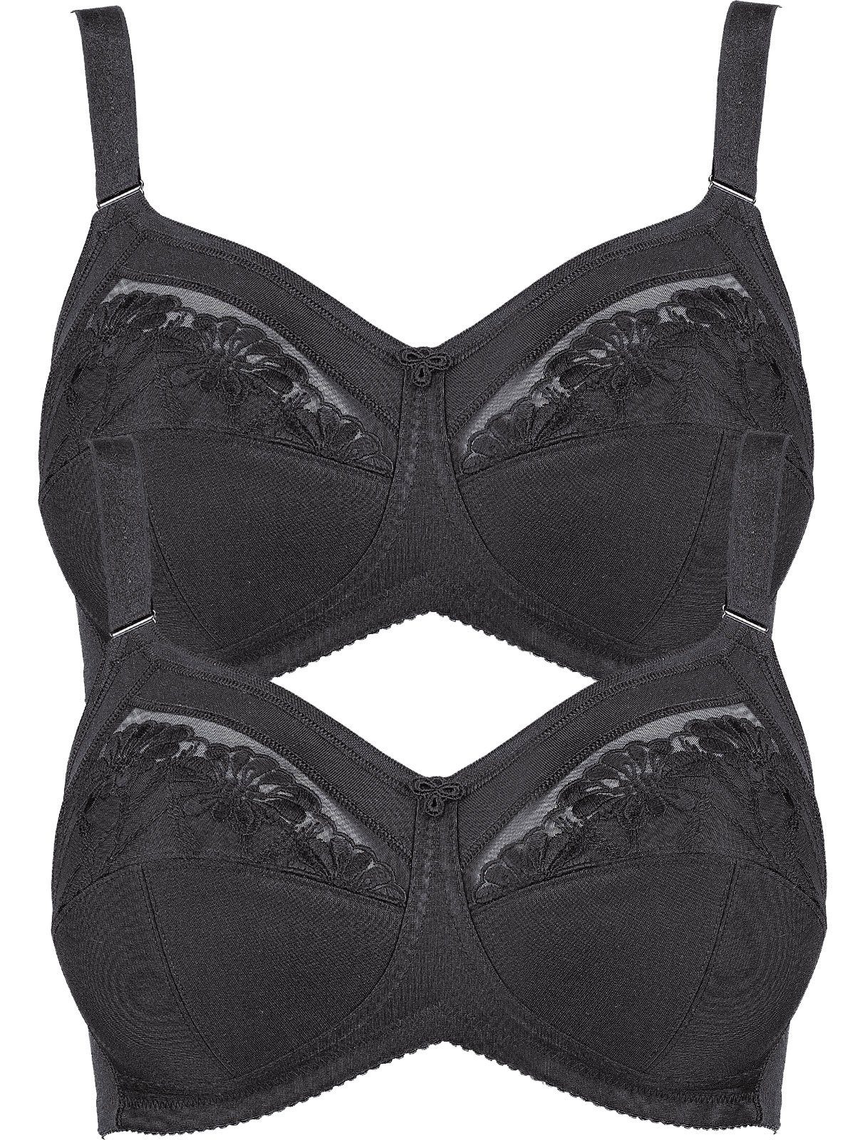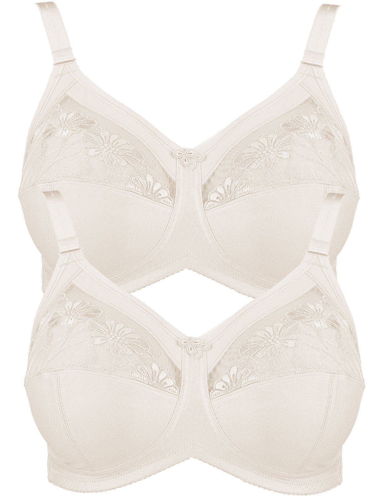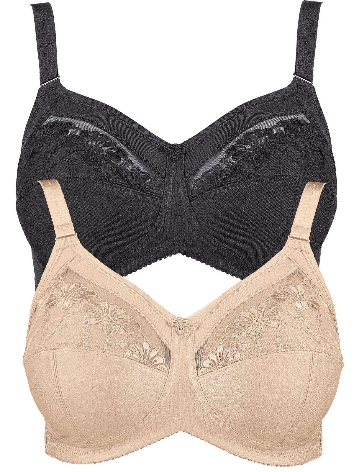 2er Pack Komfort BH ohne Bügel von der Marke Anita aus der Serie Safina. Besondere Merkmale des Artikels sind 2er Sparpack, genähtes Cup mit Stickerei, Untercup blickdicht abgefüttert, Rücken mit hohem Baumwollanteil und Rückenverschluss und Träger verstellbar. Anita steht für funktionelle und ästhetische Dessous und Bademode auf höchstem Standard mit optimaler Passform für jede Figur. Anitas Ziel ist Unterwäsche zum Verlieben.