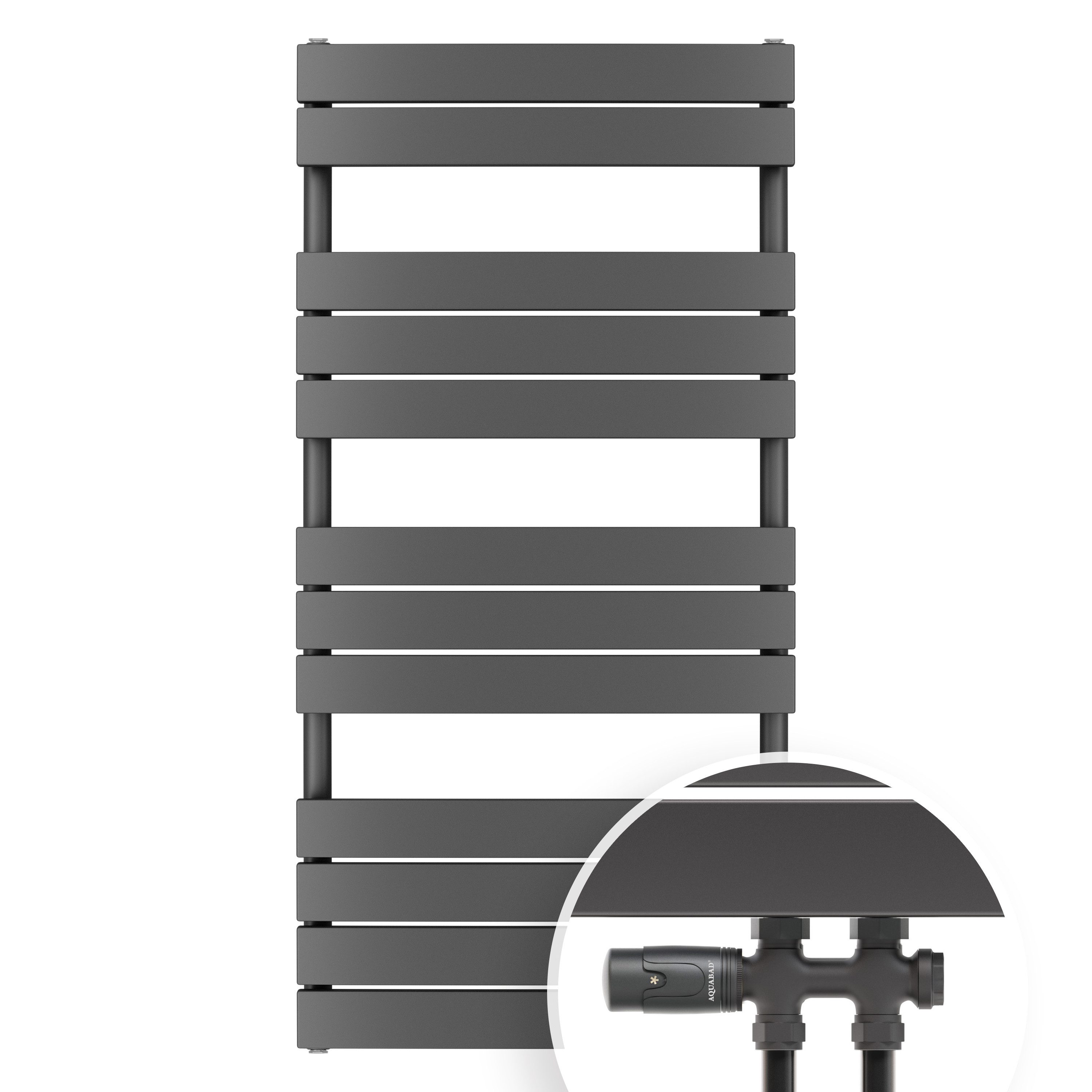 | Lieferumfang | Aquabad Badheizkörper Aurea 60 x 120 cm in Anthrazit, Befestigungssatz, Blindstopfen, Entlüftungsventil |