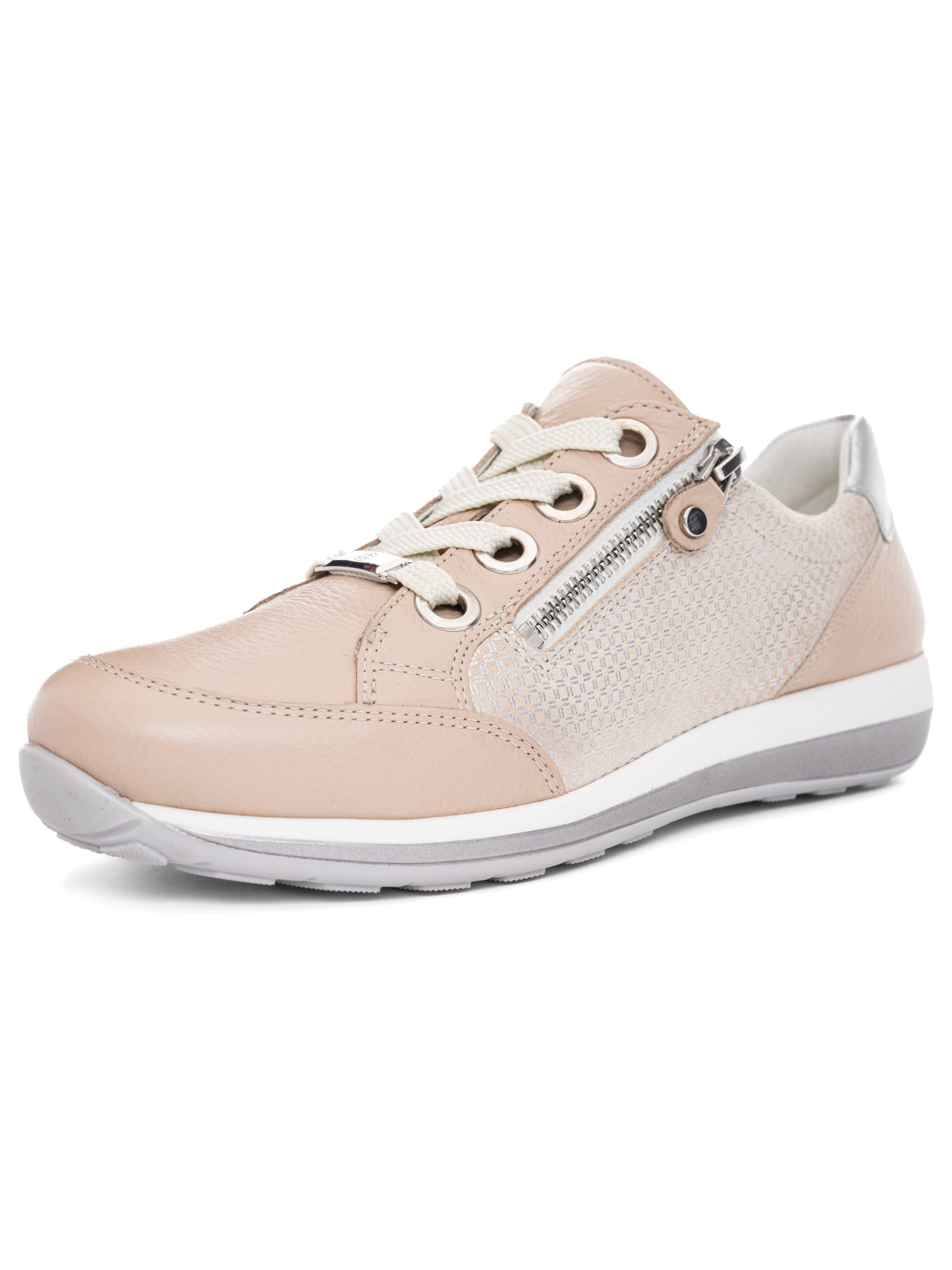Ein wahrer Held für breite Füße: die Sneaker mit H-Weite von ara, die dem Fuß ausreichend Platz im Schuh bieten und der Entstehung von Druckstellen vorbeugen. Sowohl das Innenfutter als auch das wechselbare Fußbett bieten einen deutlichen Mehrwert in Hinsicht auf Tragekomfort, da sie aus Frottee bestehen. Dieser Stoff ist sehr weich, fühlt sich grandios auf der Haut an und unterstützt dank guter Atmungsaktivität das Fußklima. Desweiteren ist der Schuh mit der innovativen HighSoft Technologie ausgestattet. Diese verspricht moosweichen Auftritt und ermüdungsfreies Gehen dank der Kombination aus hochwertigem Oberleder und einer weich gepolsterten Decksohle. Maximale Anpassungsfähigkeit wird durch den Reißverschluss und die Schnürung mit Metallösen gewährleistet. Wenn dieser Schnürer mit Keilabsatz Ihnen nicht jetzt schon den Kopf verdreht hat, so bieten Ihnen das tolle, zeitlose Design und die rutschhemmende Sohle weitere Argumente dafür, dass der Schuh hohe Ansprüche gekonnt erfüllt und einen Platz in Ihrem Schuhschrank verdient hat.