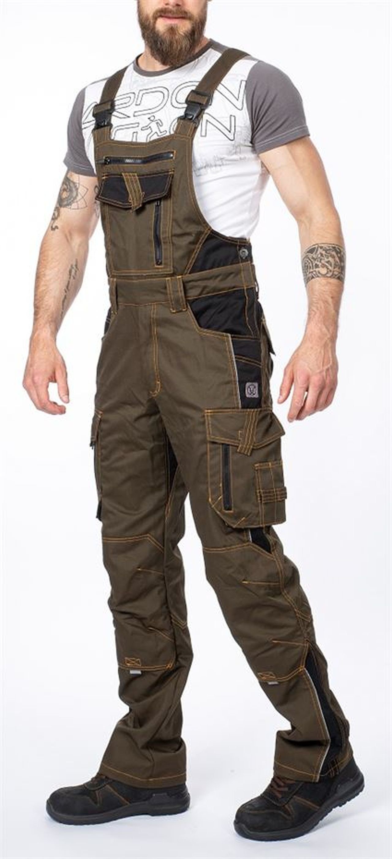 Latzhose mit Kniepolstertasche, die dank innovativer Designdetails perfekt sitzt. Zahlreiche Taschen. Brusttasche mit Klettverschluss und 2 Brusttaschen mit Reißverschluss, 2 Eingrifftaschen vorne, 2 Eingrifftaschen hinten, 2 geräumige Balgtaschen am linken und rechten Bein, 1 Reißverschlusstasche für Mobiltelefon bis 5,6", Schraubenziehertaschen, Stifthalter, 2 in die Paspel integrierte Maßbandtaschen links und rechts. Material: 60 % Baumwolle, 40 % Polyester, Twill, ca. 260 g/m2 . Größen: 46-64