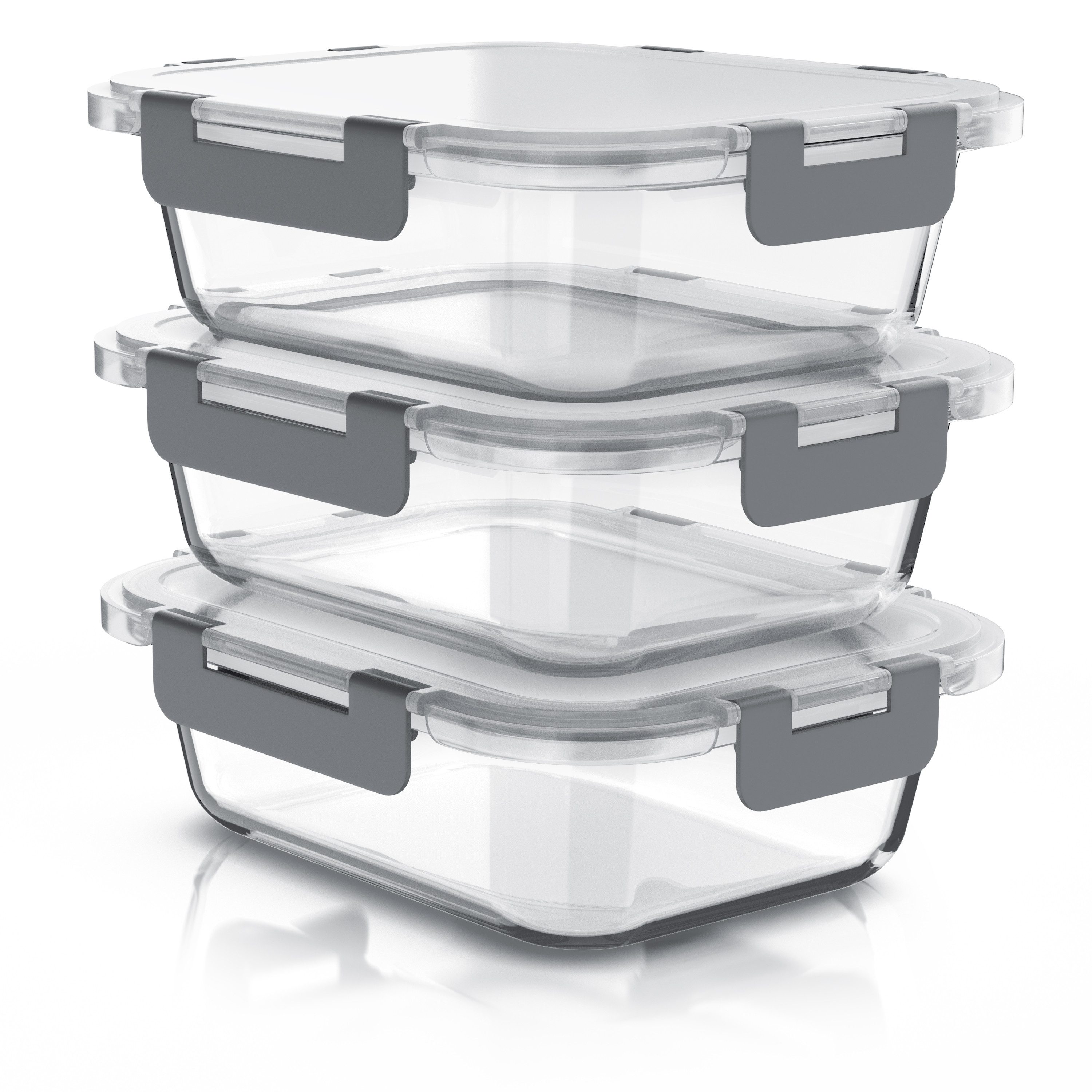 Das 3er-Set Lunchboxen aus hochwertigem Borosilikatglas (je 1040 ml) ist die ideale Transport- und Vorratslösung für den täglichen Gebrauch. Perfekt zum Mitnehmen von Obst, Salaten, belegten Broten oder Snacks ins Büro oder zum Picknick sowie zur übersichtlichen Aufbewahrung, Vorbereitung und Lagerung von Lebensmitteln. Die robusten, temperaturbeständigen Behälter sind mikrowellen-, gefrierschrank-, spülmaschinen- und ofengeeignet. Dank luftdichtem Deckel mit Silikondichtung bleiben Speisen länger frisch und sicher verstaut – auslaufsicher und hygienisch. Das stapelbare Design sorgt für Ordnung und spart Platz in Küche und Kühlschrank. Deckel vor dem Erhitzen in Mikrowelle oder Backofen entfernen.