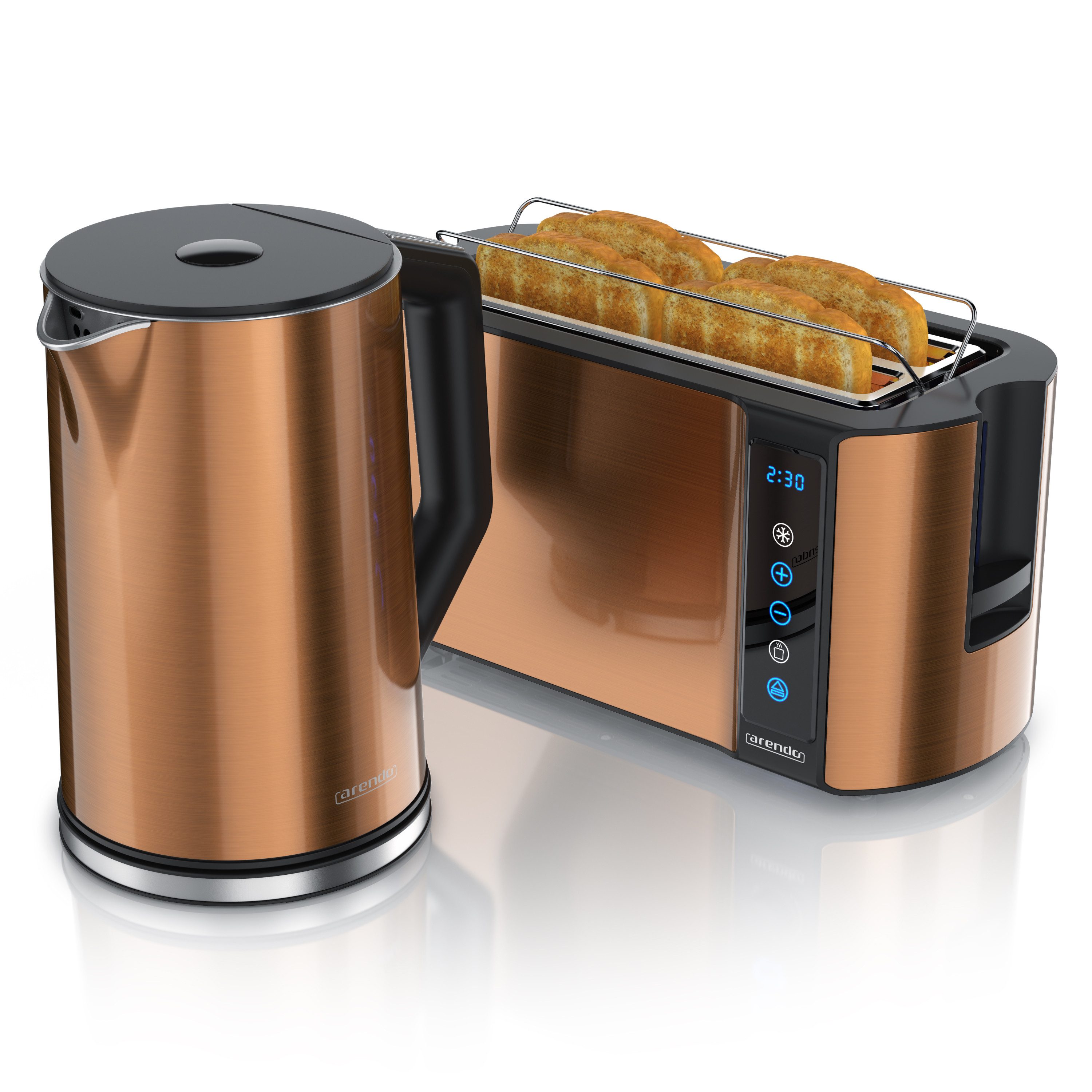 LIEFERUMFANG: Set Arendo Wasserkocher ELEGANT und 4-Scheiben-Langschlitz-Toaster FRUKOST TOUCH