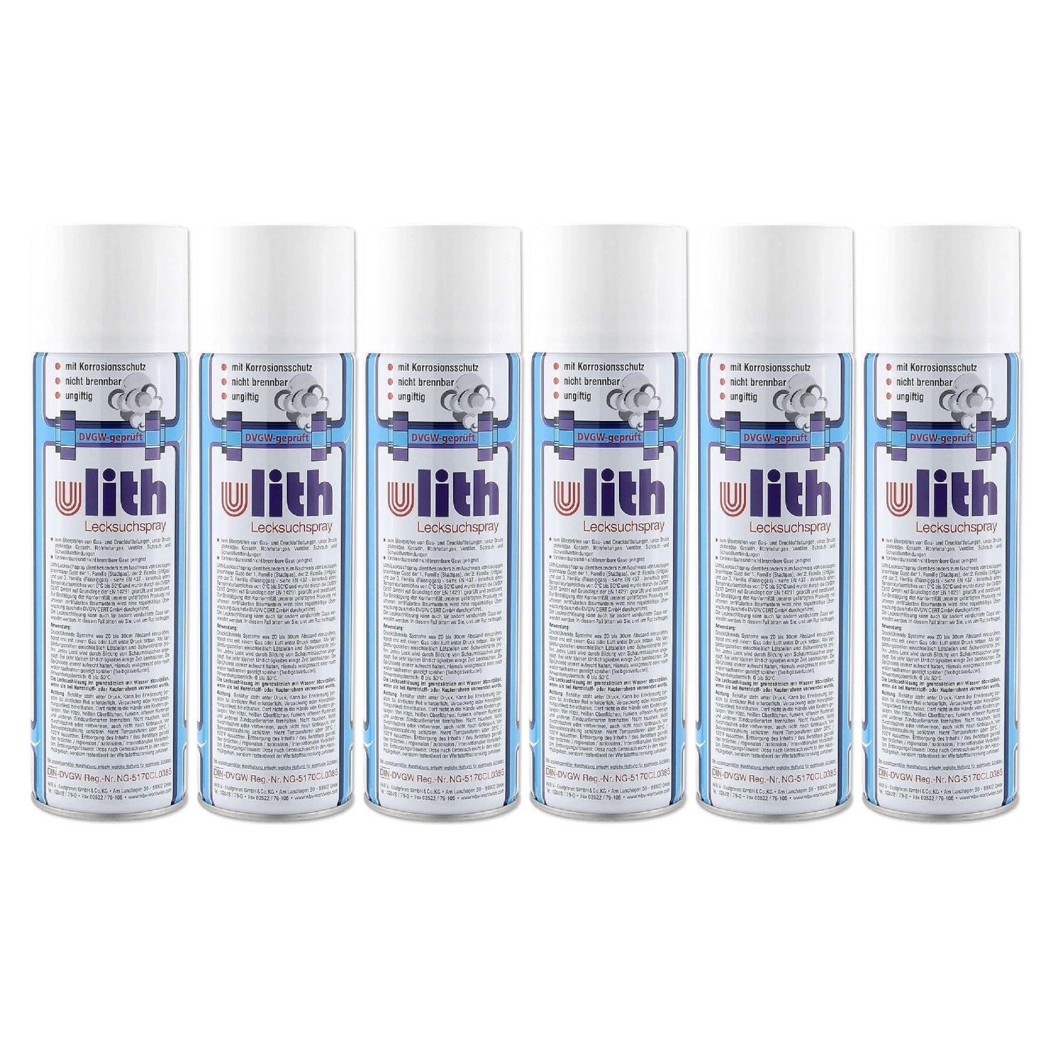 6x Ulith Lecksuchspray 400ml – DVGW-geprüftes Leckfinder-Spray für Gas- und Druckluftleitungen, Korrosionsschutz, biologisch abbaubar