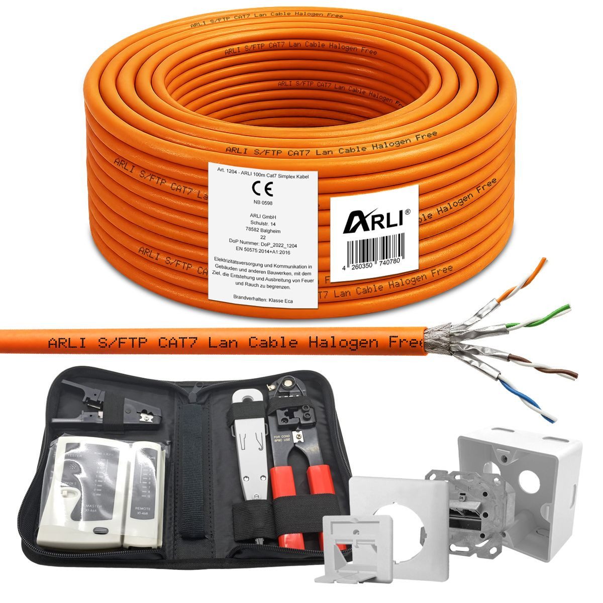 | Lieferumfang | 100m Cat7 Verlegekabel + Crimpzange RJ45 mit Schneidmesser + LSA Anlegewerkzeug + Netzwerktester (ohne Batterie) + Abisolierer + Werkzeugtasche + Cat6a Netzwerkdose + Abdeckung + Rahmen, weiss |