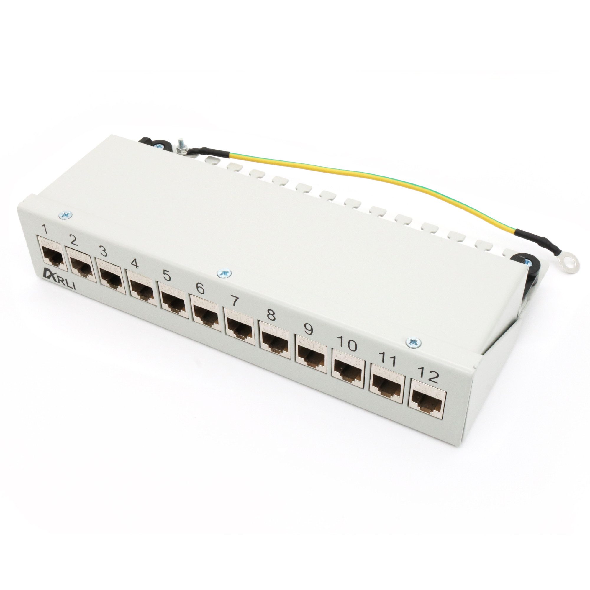 ARLI Patchpanel inkl. 12x Keystone Cat8.1 Module – 12-Port Patchfeld Gehäuse Lichtgrau– Einfache Snap-In Montage – 1HE – Inkl. Kabelbinder & Montagematerial