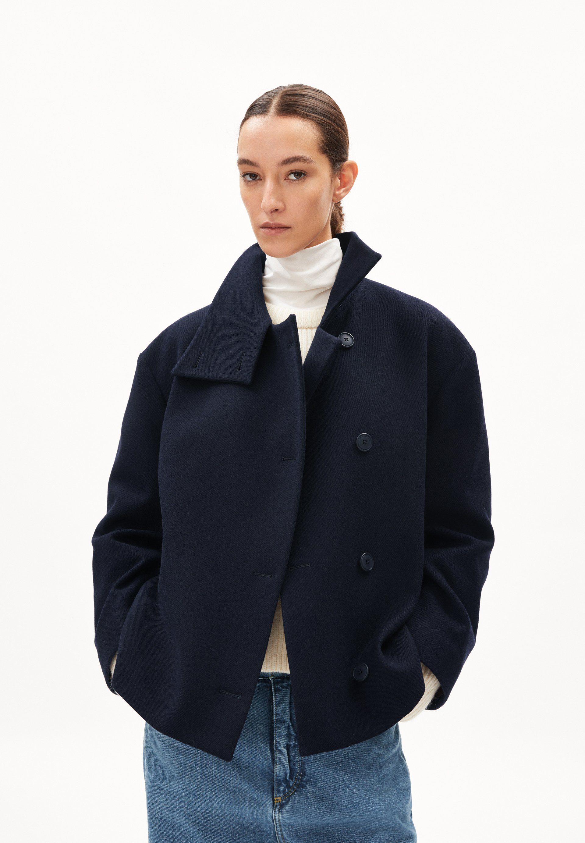 | Besondere Merkmale | Mantel aus recycelter Wolle |