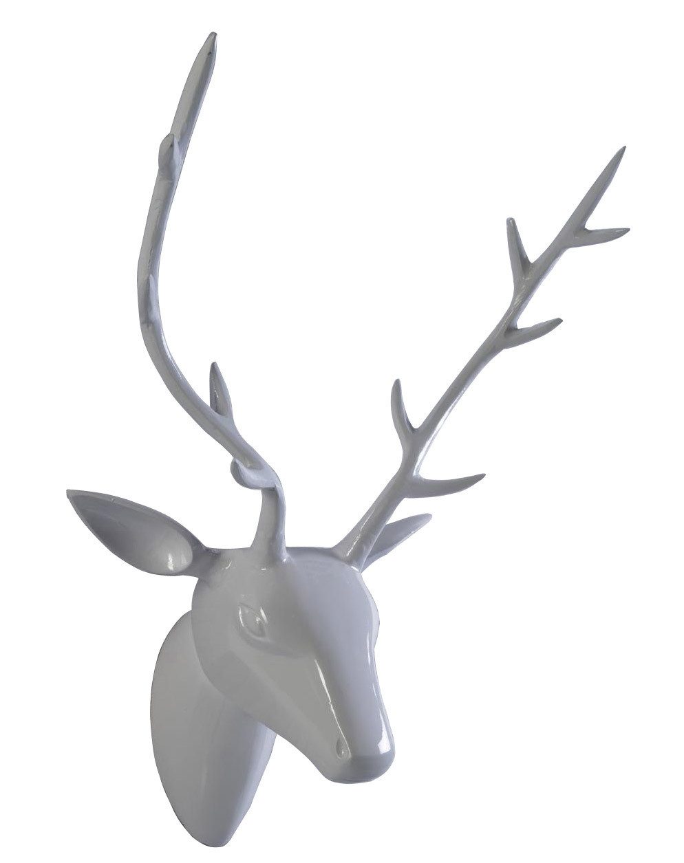 Die große Wandfigur in Form eines Geweih-Hirschkopfes ist ein beeindruckendes Dekorationsstück, das jedem Raum eine moderne und zugleich rustikale Note verleiht. Der Hirschkopf ist in einem stilvollen, Weiß gehalten, was ihm eine frische, zeitgemäße Ausstrahlung verleiht und ihn vielseitig kombinierbar macht.