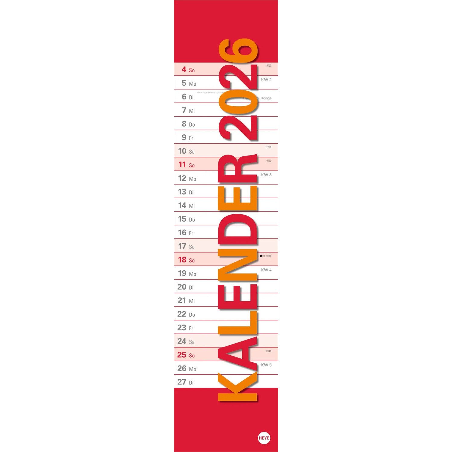 - Immer bestens organisiert durch den Tag: Der neutrale Planer im Großformat sorgt dafür, dass Sie all Ihre Termine im Blick behalten - Ob im Büro oder Zuhause, der längliche Kalender mit Datumsschieber ist eine praktische Organisationshilfe für alle To-dos - Der Wandkalender 2026 zum Eintragen ist perfekt für alle, die ein funktionales, schlichtes Design bevorzugen - 16 x 70 cm sind viel Raum für Terminübersicht, wichtige Daten und vorausschauende Planung - Organisations-Allrounder für jede Lebenslage: Die Terminkalender von Heye aus dem Athesia Kalenderverlag