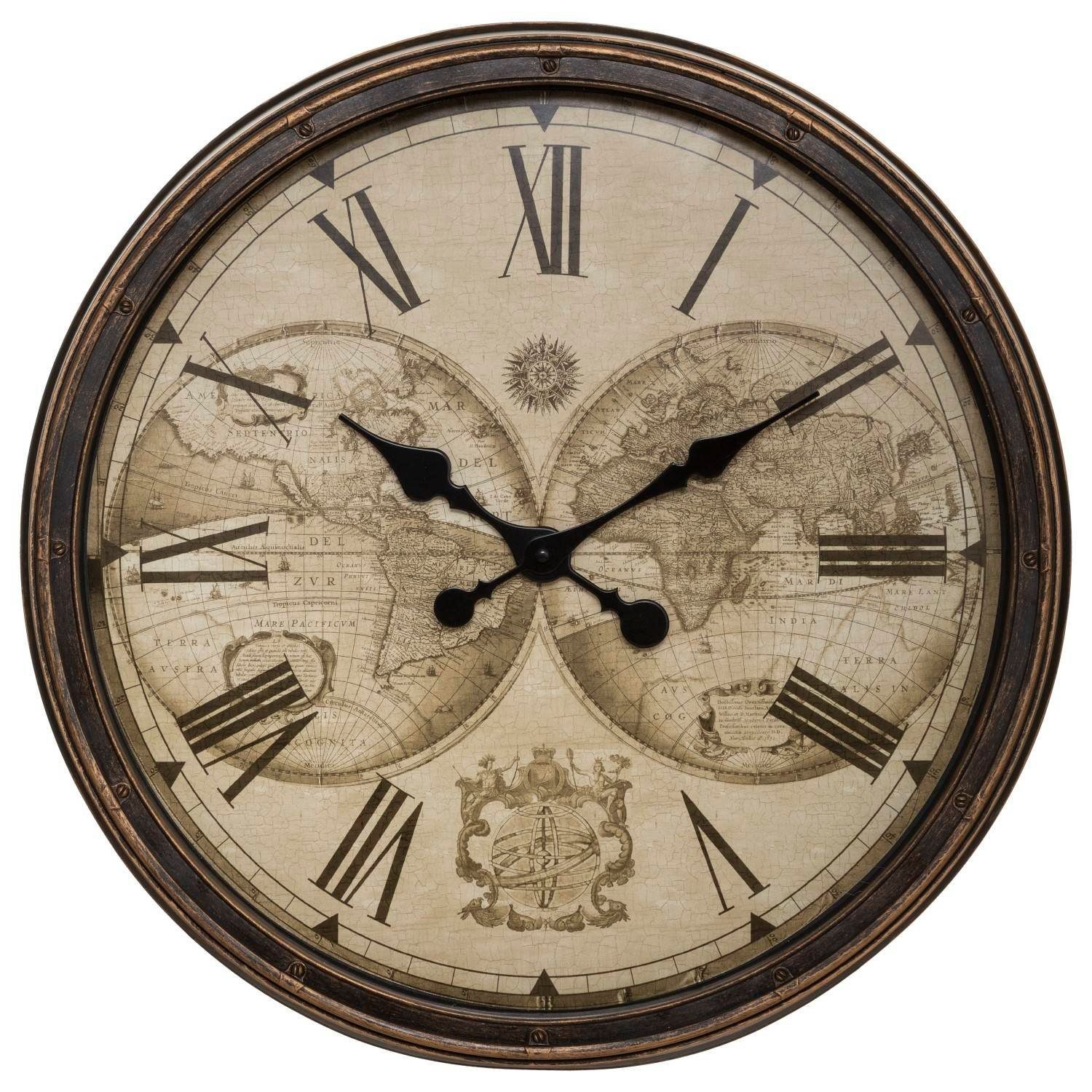 Wanduhr mit einer TOMY Weltkarte von Atmospher besticht durch ein braunes Design und einen Schild mit Weltkarte. Accessoire können Sie es im Wohnzimmer, Flur oder in der Küche an die Wand hängen. Besonders hervorzuheben sind die eleganten römischen Ziffern auf dem Schild.