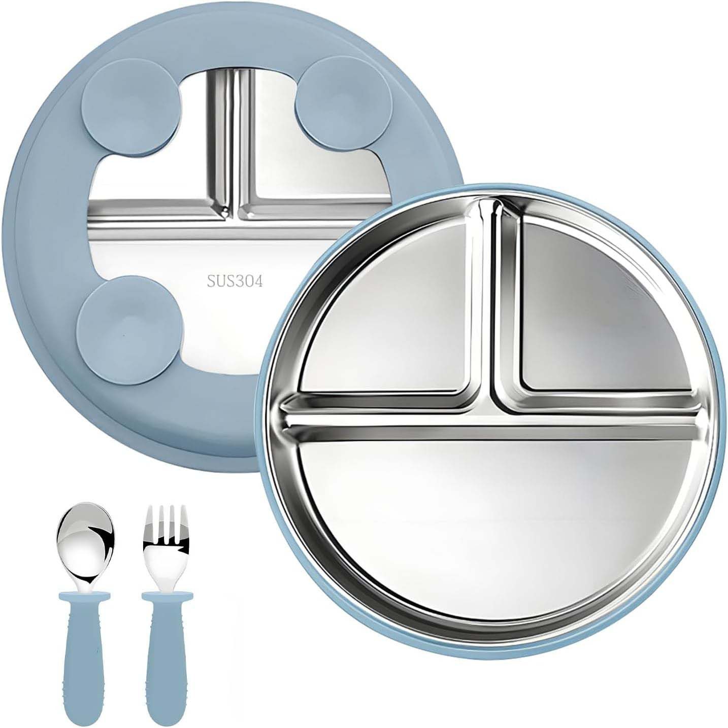 Innovatives Design: Der Kinderteller mit Saugnapf kombiniert strapazierfähigen 304 Edelstahl mit einer Silikonbasis, die mit vier starken und rutschfesten Saugnäpfen ausgestattet ist. Diese Teller bleiben sicher auf Hochstuhltabletts oder Tischen, was Ihrem Kind hilft, selbstständig zu essen und die Unordnung bei den Mahlzeiten minimiert