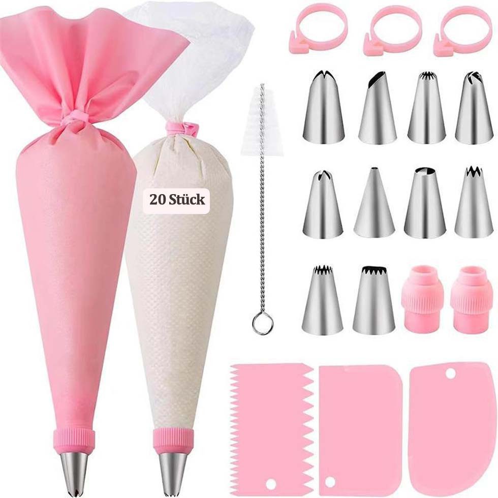 | Lieferumfang | 40-teiliges Set Tortendeko Backset: 10 Kuchendüsen 3 rosa Silikonbänder 2 rosa kleine Konverter 3 rosa Spatel 1 rosa 12-Zoll-TPU-Piping-Beutel 1 Regenschirm-Reinigungsbürste 20 Einweg-Piping-Beutel |