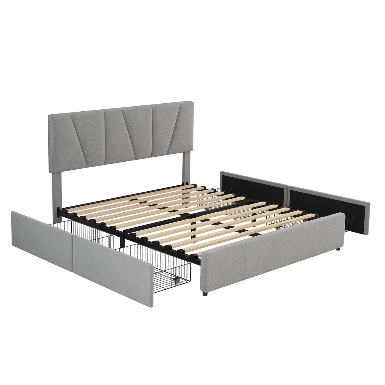 [Vier Schubladen] Mit einer Aufbewahrungsschublade unter dem Bett bietet Ihnen dieser gepolsterte Bettrahmen zusätzlichen Platz für die Aufbewahrung des täglichen Bedarfs wie Bettlaken, Accessoires oder Kleidung für die Nebensaison.