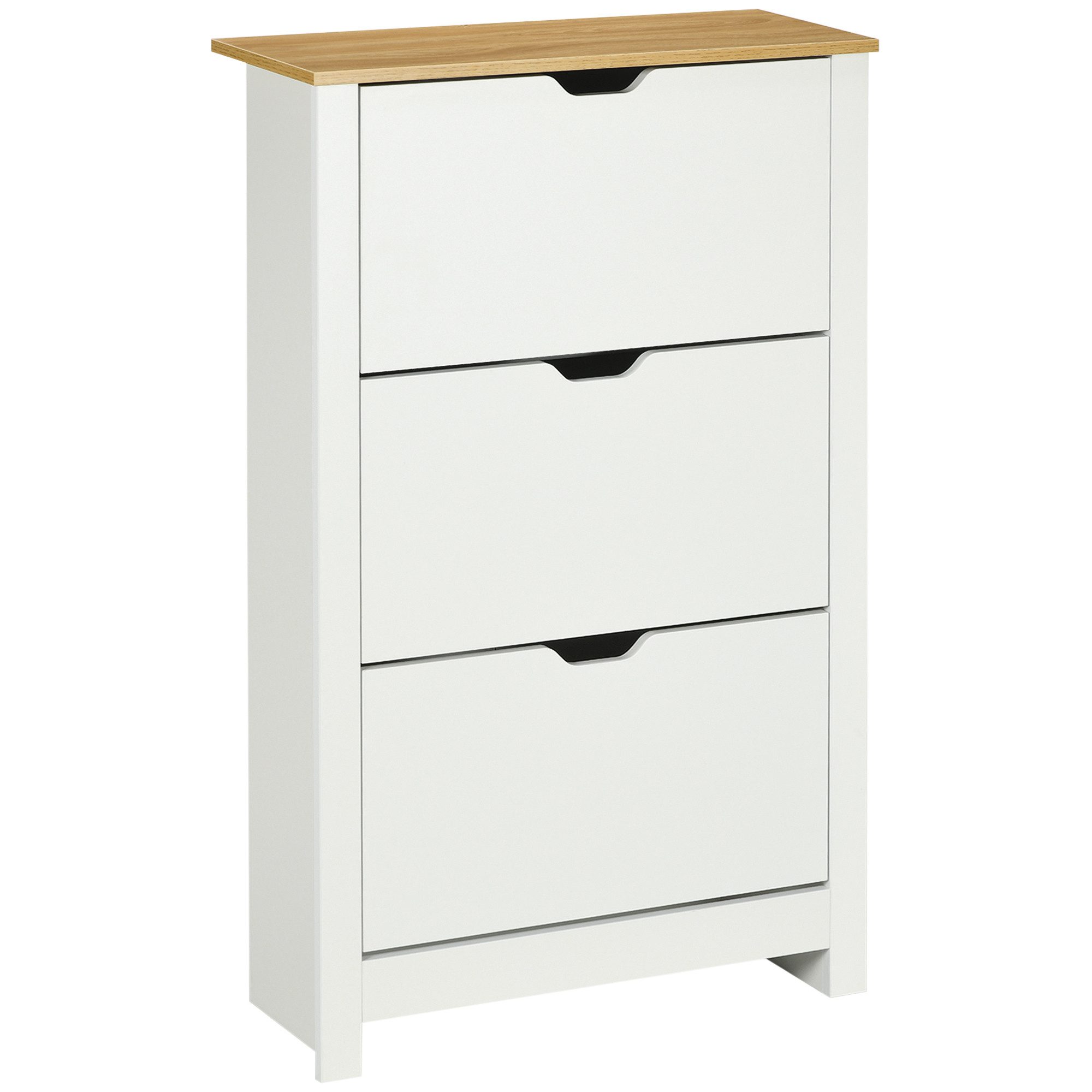 Dieser funktionale Schuhschrank verfügt über drei großzügige Klappfächer, die jeweils mit zwei Einlegeböden ausgestattet sind. Damit finden bis zu 18 Paar Schuhe in Standardgrößen bequem Platz – ideal für Haushalte mit mehreren Personen oder für Schuhliebhaber.