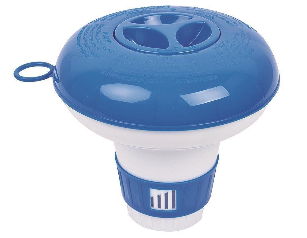 Ein Verstellring mit stufenlos einstellbarer Dosieröffnung, ermöglicht eine regulierbare Abgabe der benötigten Chlormenge ins Poolwasser. Das Wasser deines Gartenpools bleibt somit länger klar, sauber und hygienisch rein.