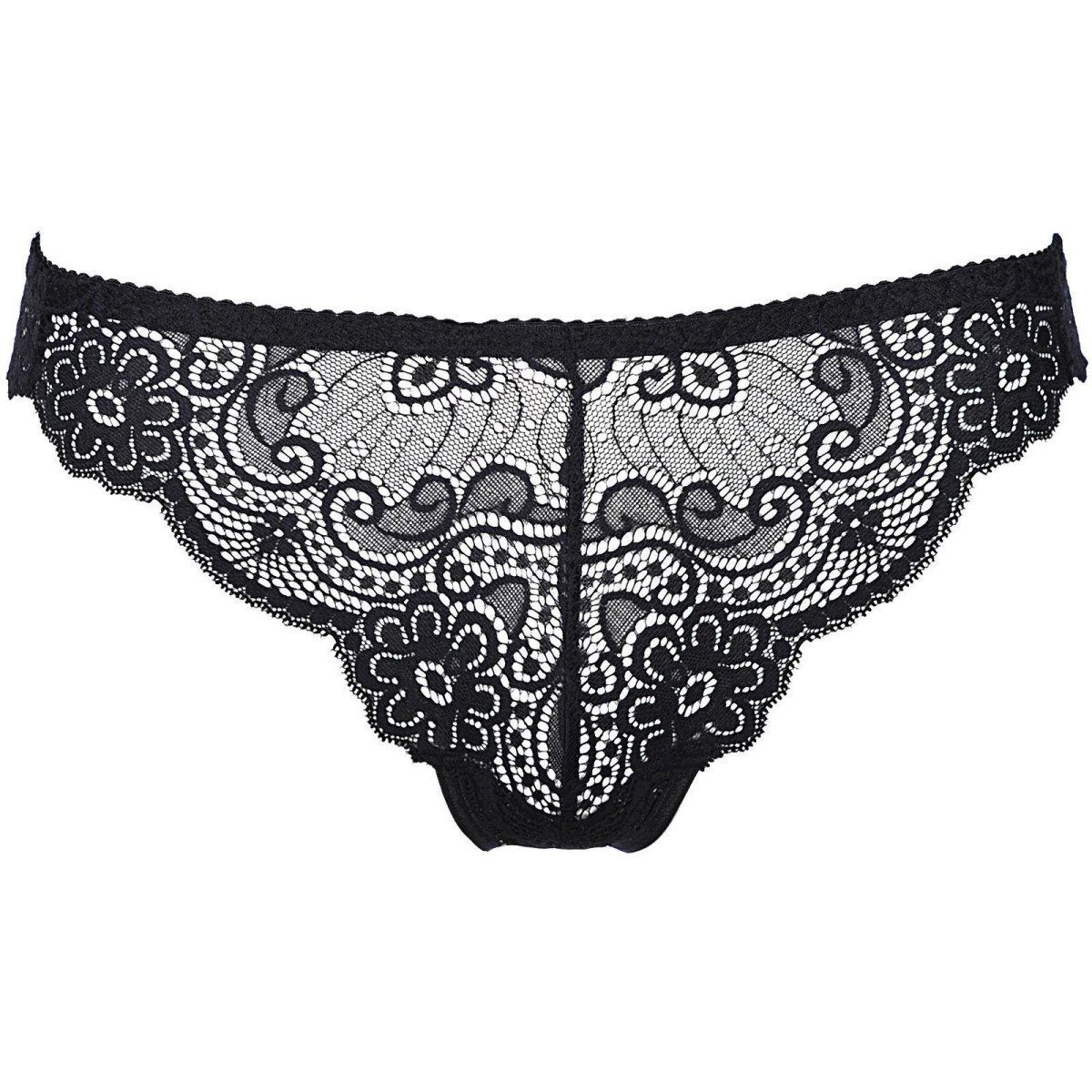 Edler schwarzer Spitzenstring Auf der Rückseite mit einer kleinen Schleife Der Schritt ist leicht gepolstert und sorgt somit für ein enormen Tragekomfort