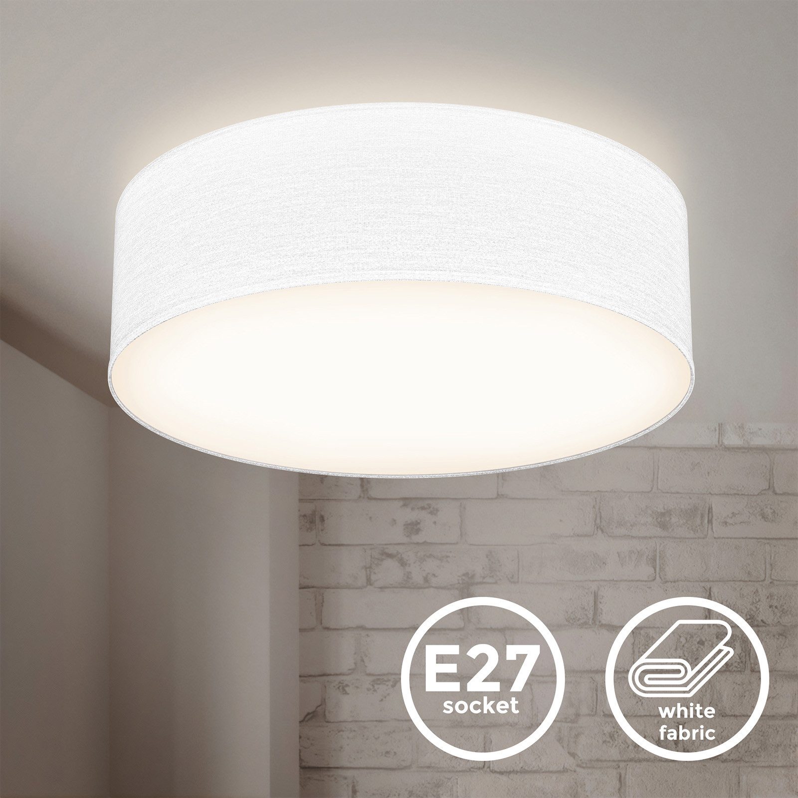 | Wissenswertes | Deckenleuchte 1-flammig - Stoff-Kunststoff-Metall / grau - exkl. 1 x E27 max. 40W ohne Leuchtmittel - IP20 - 300x100mm (DxH) |