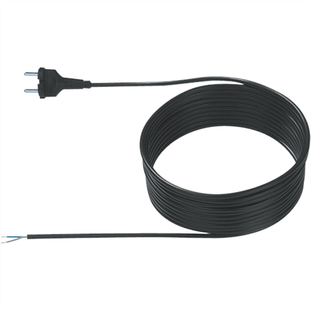 Leitung ZULEITUNGEN/ ANSCHLUSSLEITUNGEN Stromleitung 10A/ 250V~ 6,3 m H05VV-F 2 0,75 mm² schwarz CEE 7/17 Konturenstecker zentral gespritzt 30mm abgemantelt mit Aderendhülsen einzeln verpackt