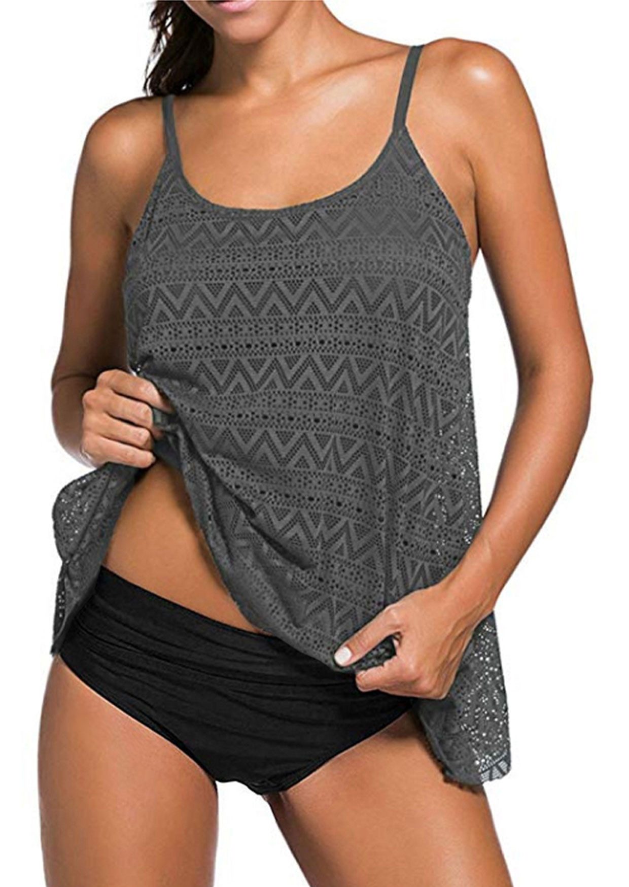 Unser zweiteiliger Tankini im Häkellook mit Badeslip ist die perfekte Kombination aus Stil und Komfort für Ihre Tage am Strand oder im Schwimmbad. Das Oberteil des Tankinis besticht durch sein trendiges Häkel-Design, das einen Hauch von Eleganz verleiht und gleichzeitig einen gewissen Boho-Chic ausstrahlt. Der Badeslip ergänzt das Outfit perfekt und sorgen für eine bequeme Passform und Bewegungsfreiheit beim Schwimmen oder Sonnenbaden. Der Tankini ist aus hochwertigen Materialien gefertigt, die schnell trocknen und angenehm auf der Haut liegen. Er bietet eine gute Abdeckung und Unterstützung, während er dennoch feminin und modisch aussieht. Mit diesem zweiteiligen Tankini können Sie sich sowohl wohl fühlen als auch gut aussehen, egal ob Sie am Pool entspannen oder im Meer schwimmen.