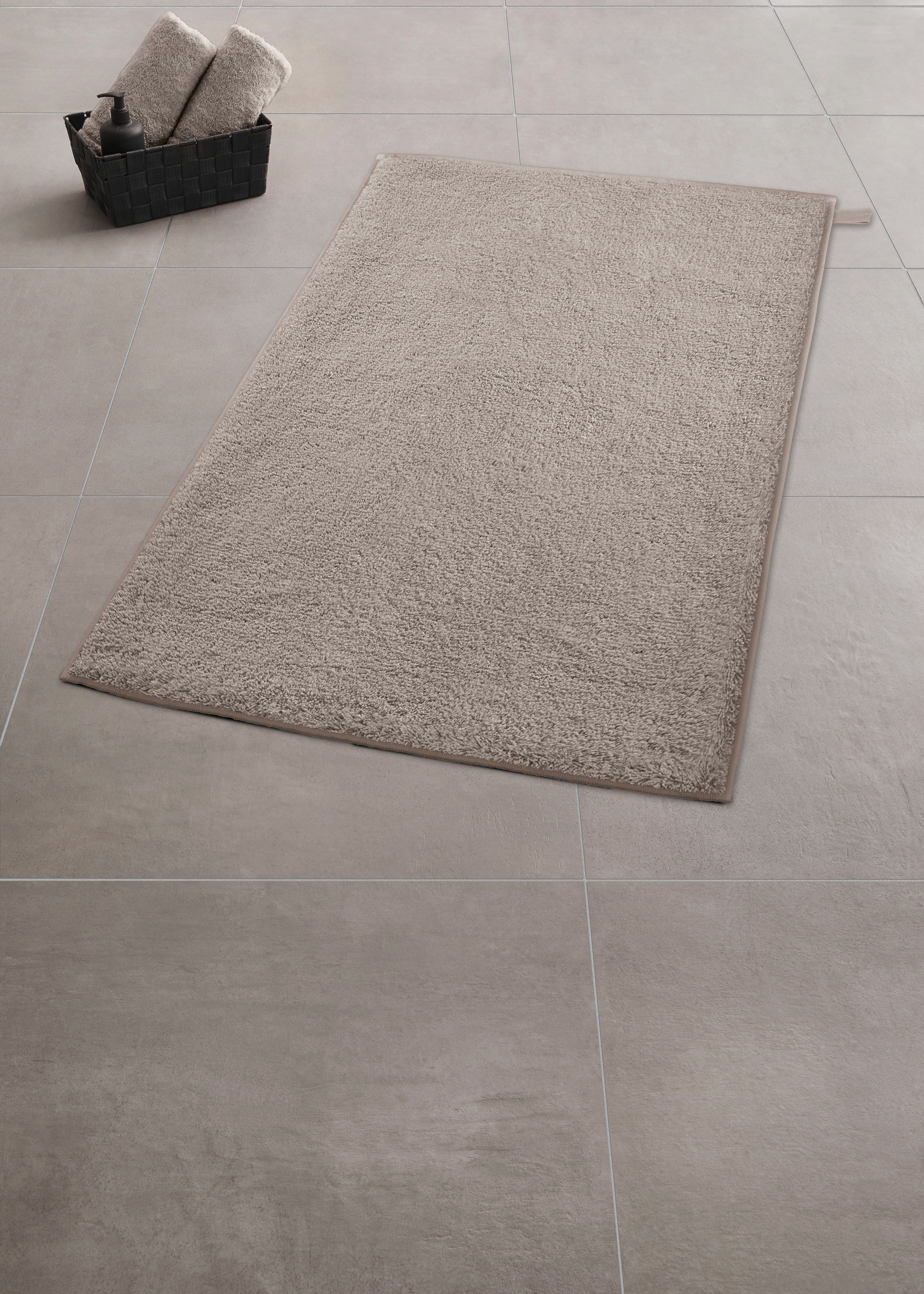 Mit diesem Badteppich liegt Ihnen die Welt zu Füßen. "Vita" von Kleine Wolke verdankt sein modernes Design der zeitlosen Uni-Optik mit praktischer Schlaufe. Damit beweist die kuschelweiche Badematte: Weniger ist manchmal mehr! Ausgezeichnet lässt sich der Teppich in jedes Badkonzept integrieren und erhöht den Wohlfühlfaktor in Badezimmer oder Gäste-WC. "Vita" verfügt über eine hervorragende Trittfläche, die effektiv Nässe aufnimmt und trotzdem innerhalb kürzester Zeit wieder trocknet. Genutzt werden kann das Modell selbstverständlich auch auf Fußbodenheizungen. Die Rückseite ist mit einer rutschhemmenden Beschichtung ausgestattet. An diesem Produkt werden Sie über viele Jahre Ihre Freude haben. Bitte beachten Sie, dass Badteppiche – insbesondere Modelle mit flauschigem Flor – herstellungsbedingt anfangs flusen können. Diese Flusenbildung ist unbedenklich und verflüchtigt sich in der Regel nach den ersten Wäschen. Um den Flor aufzulockern und die Lebensdauer des Teppichs zu verlängern, empfehlen wir, ihn regelmäßig auszuschütteln oder mit geringer Saugkraft abzusaugen. Baumwollteppiche sollten bei maximalem Wasserstand gewaschen werden – idealerweise in einem Kissenbezug, um Flusen aufzufangen.