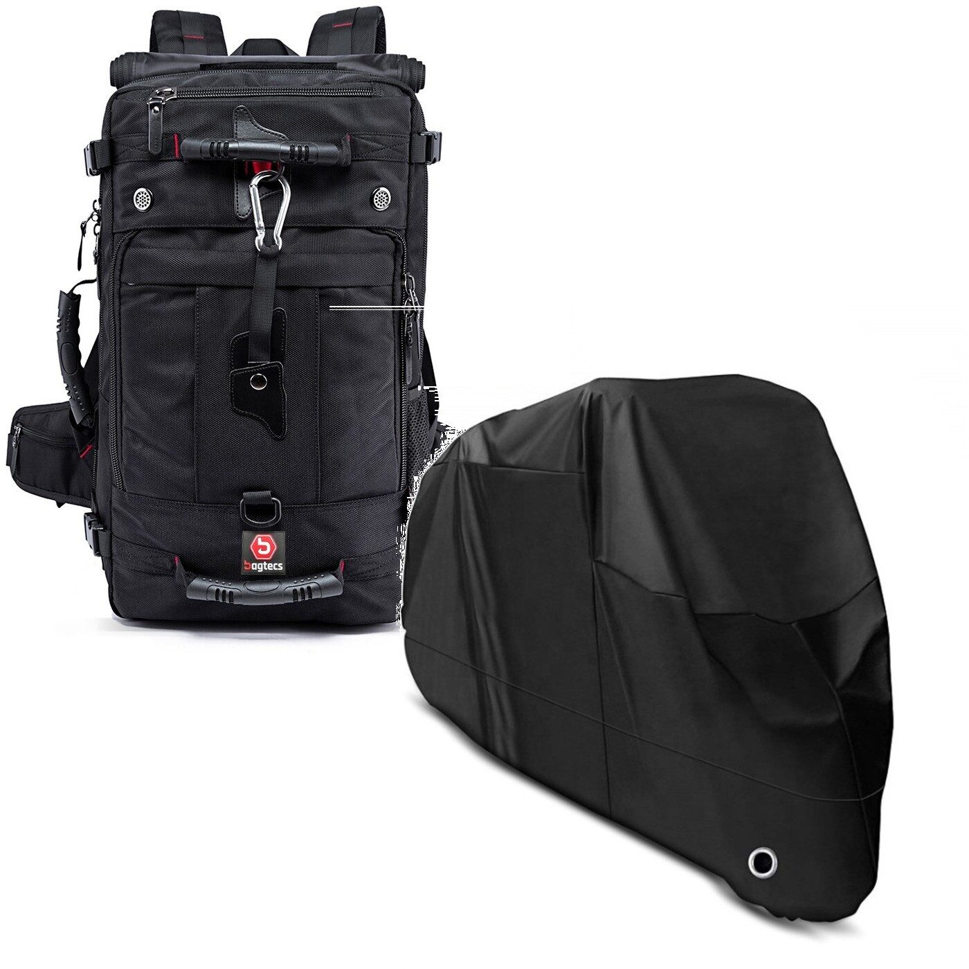 Bagtecs Reisetasche Set: Motorrad Rucksack HK4 Hecktasche 45Ltr in sw # mit Motorrad Abdec