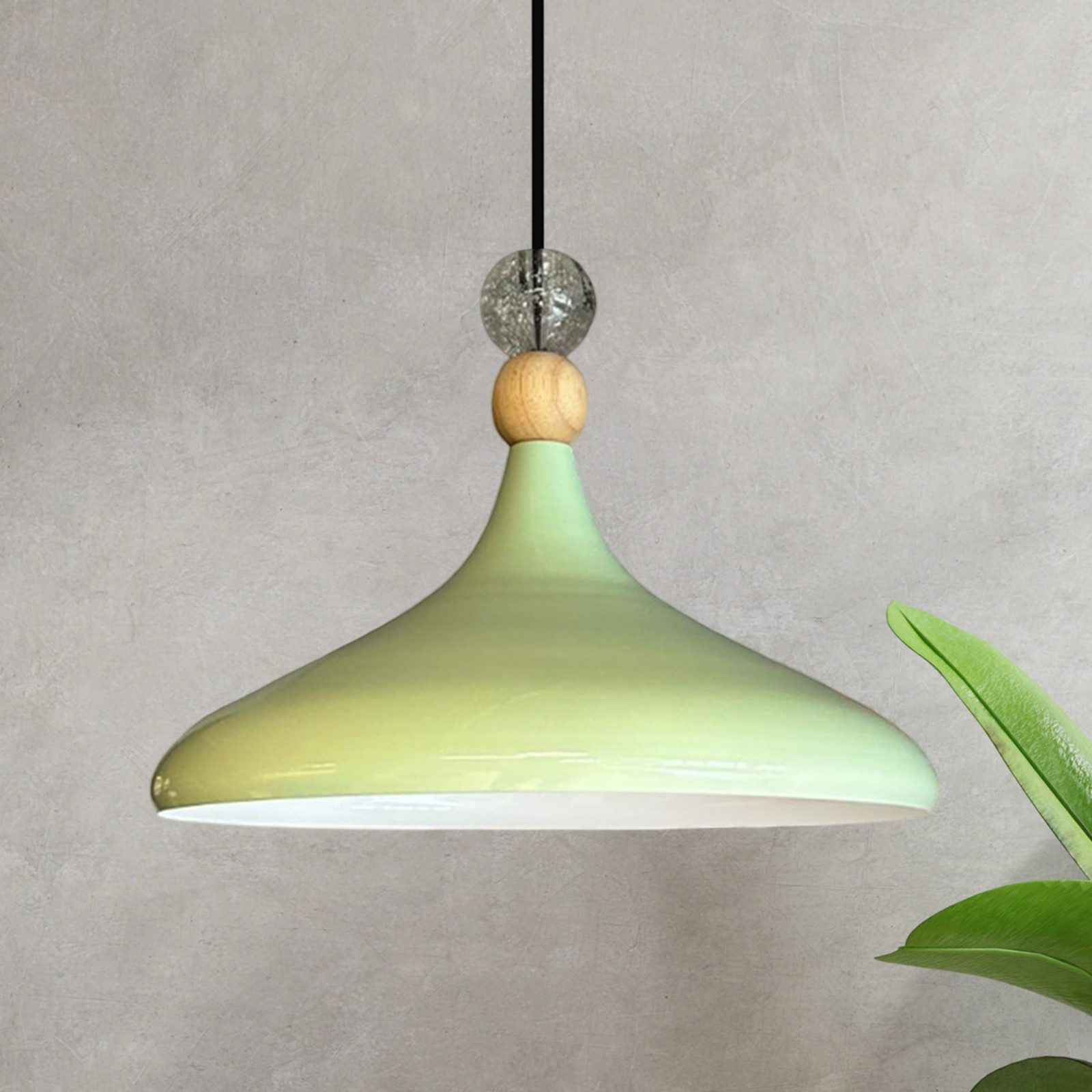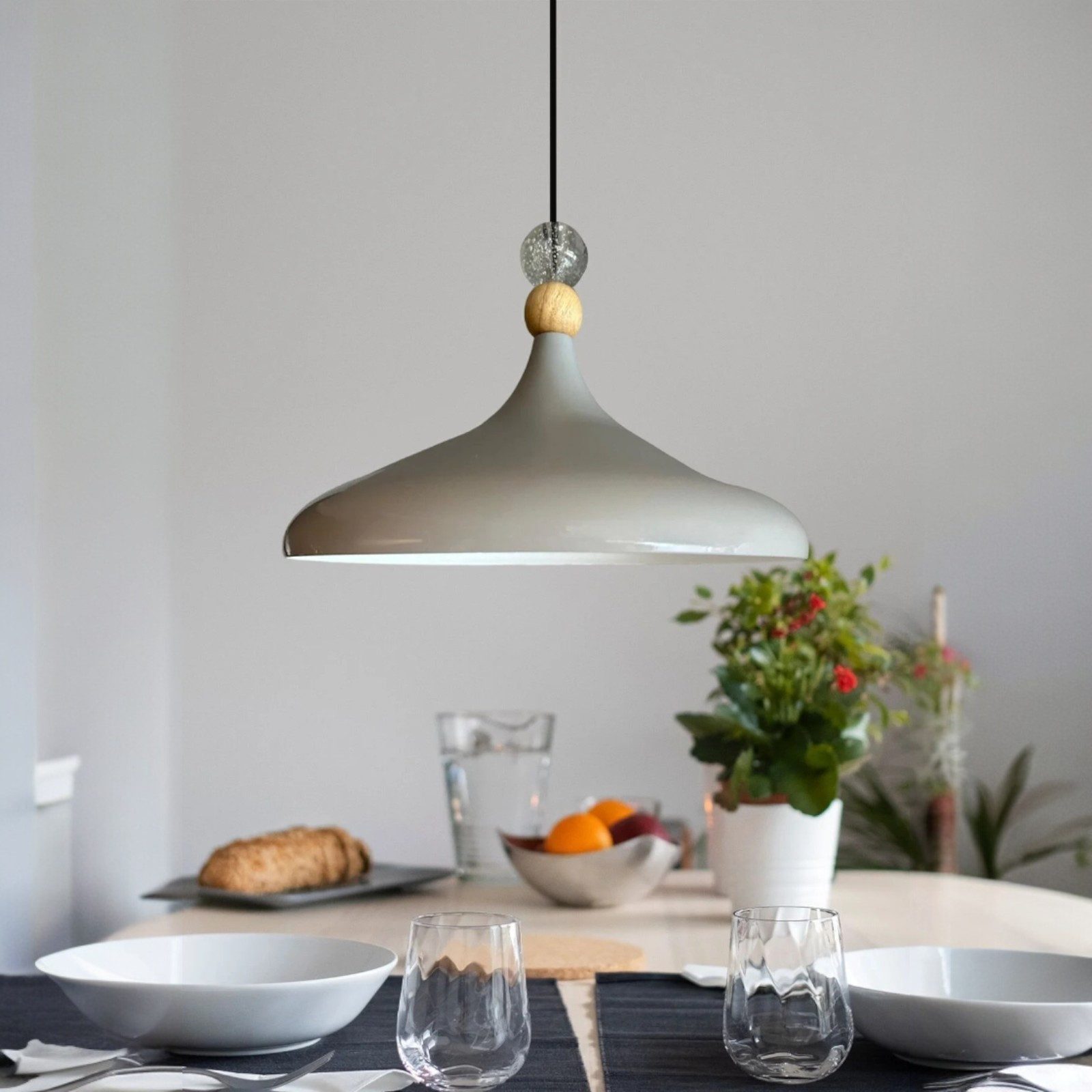 | Wissenswertes | Bamyum Design Pendelleuchte • 1 Stück Produkt • Fassung: E27 • Ohne Leuchtmittel • Halogen / LED max 60 Watt • Spannung: 120-240V • Material: Metall Durchmesser 35 cm, Höhe: 28 cm. |