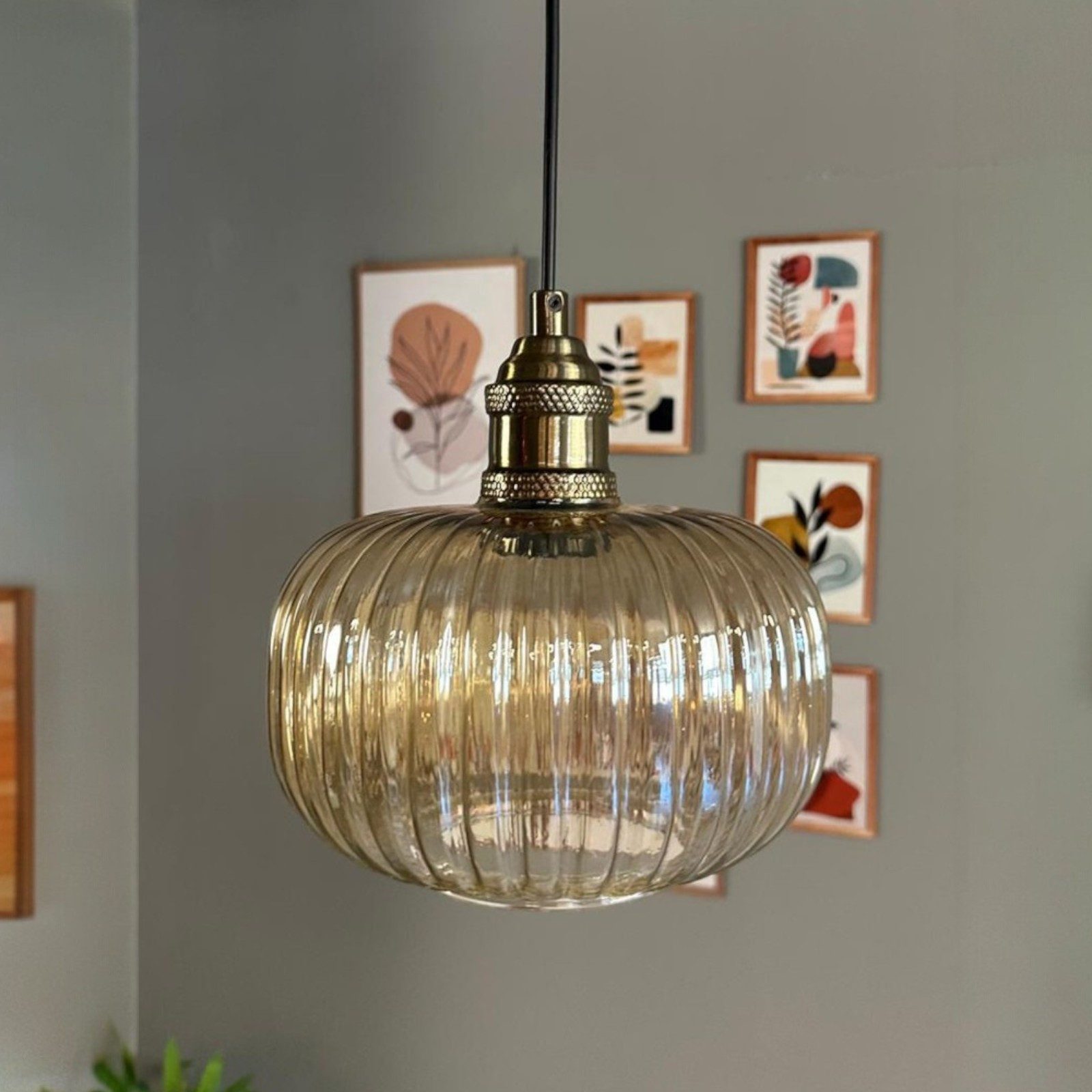 | Wissenswertes | Bamyum Design Pendelleuchte • 1 Stück Produkt • Fassung: E27 • Ohne Leuchtmittel • Halogen / LED max 60 Watt • Spannung: 220-240V • Material: Glas Höhe 25 cm x Durchmesser 20 cm |