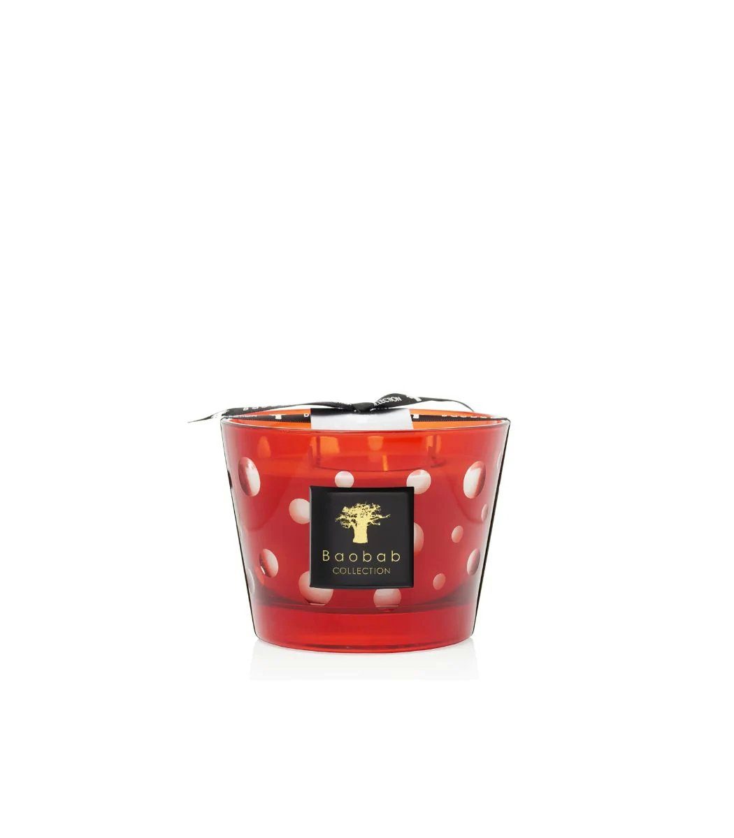 Willkommen bei Baobab Max 10 Bubbles Red, der perfekten Kerze für den Winter oder festliche Anlässe. Mit seinem temperamentvollen, tiefroten Glas mit einer Vielzahl von kreisförmigen Mustern in verschiedenen Größen bringt dieses wunderschöne Stück Lebendigkeit und Stil in jeden Innenraum. Mit seinen transparenten Blasen, durch die das weiße Wachs wie durch ein Vergrößerungsglas hindurchscheint, können Sie seine einzigartige Schönheit aus jedem Blickwinkel bewundern. Um das Erlebnis abzurunden, verströmt diese atemberaubende Kerze einen warmen Duft von Beeren und Tonkabohne - damit Sie nicht nur gut aussehen, sondern auch gut riechen. Sichern Sie sich noch heute eines dieser limitierten Exemplare und bringen Sie Ihre Einrichtung einen Schritt näher an die Perfektion.
