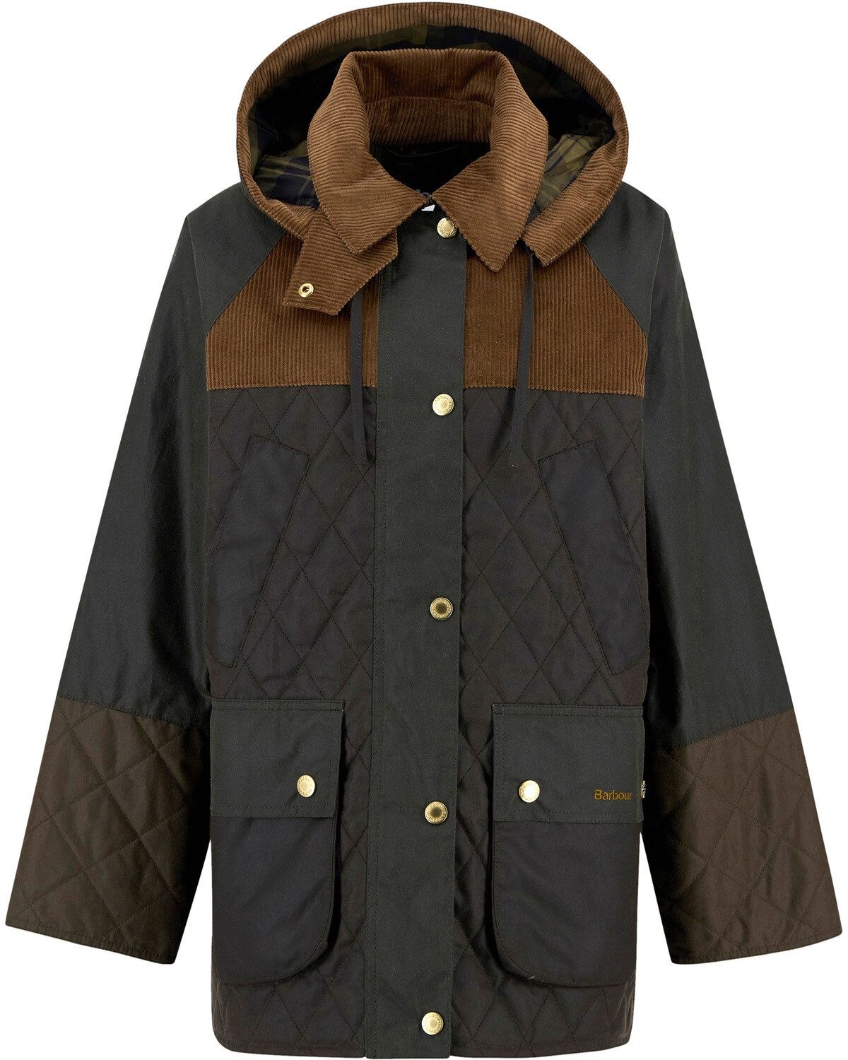Die Damen Wachsjacke Imelda von Barbour ist eine stilvolle und funktionale Jacke, die vom klassischen Bedale-Design inspiriert ist. Hergestellt aus gewachstem Baumwollmaterial (6oz Sylkoil), bietet diese Jacke nicht nur einen robusten Schutz vor den Elementen, sondern auch einen zeitlosen Look. Die abnehmbare Kapuze sorgt für zusätzliche Flexibilität und Komfort. Das Blockfarben-Design in Kombination mit gesteppten und ungesteppten Bereichen sowie den Cordbesätzen an Kragen und Schultern verleiht der Jacke einen modisch-jungen Look. Die praktischen Handwärmetaschen und die geräumigen Frontpattentaschen bieten ausreichend Stauraum für persönliche Gegenstände. Das Tartan-Innenfutter aus Baumwolle sorgt für zusätzlichen Komfort. Mit einer Rückenlänge von 75 cm und einer entspannten Passform ist die Imelda die ideale Wahl für Damen, die Wert auf einen modischen und zugleich praktischen Look im British Style legen. Das Branding auf der linken Taschenklappe fügt eine subtile Authentizität hinzu. Bitte beachten Sie, dass die Jacke nicht gewaschen werden sollte; eine Reinigung mit einem feuchten Schwamm genügt, um sie in gutem Zustand zu halten. Oberstoff: 100% Baumwolle (gewachst); Futter: 100% Baumwolle