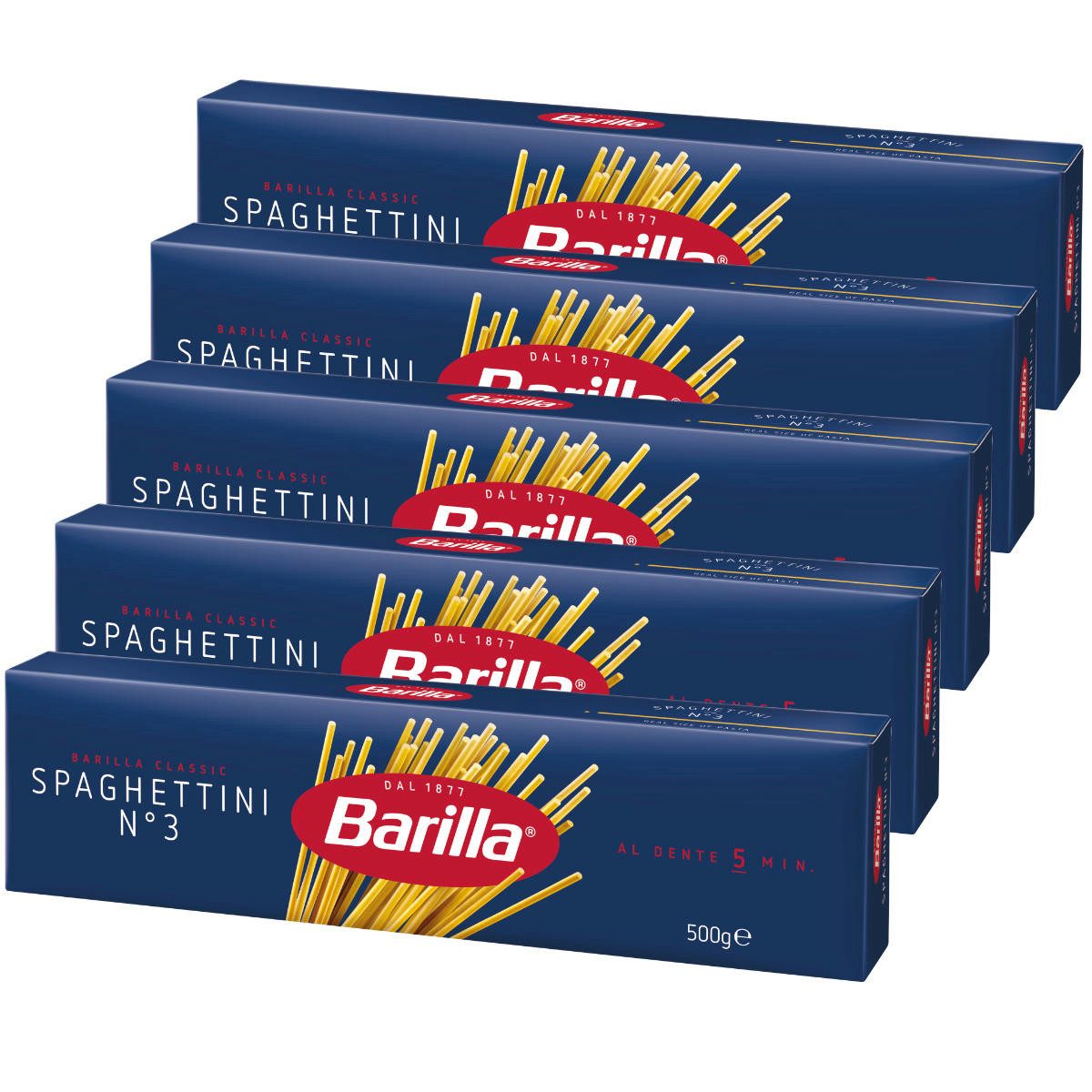 | Bezeichnung des Lebensmittels | Barilla Spaghettini Nummer 3 Hartweizennudeln Pasta 500g 5er Pack |