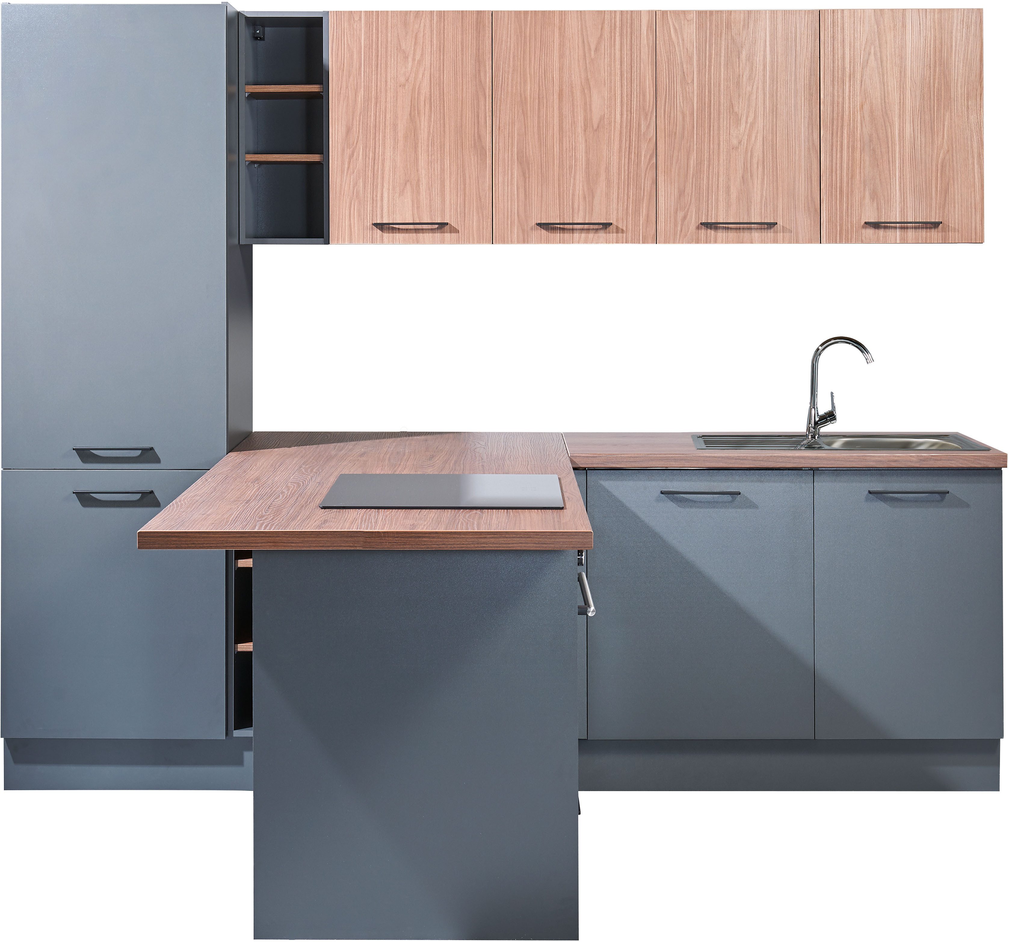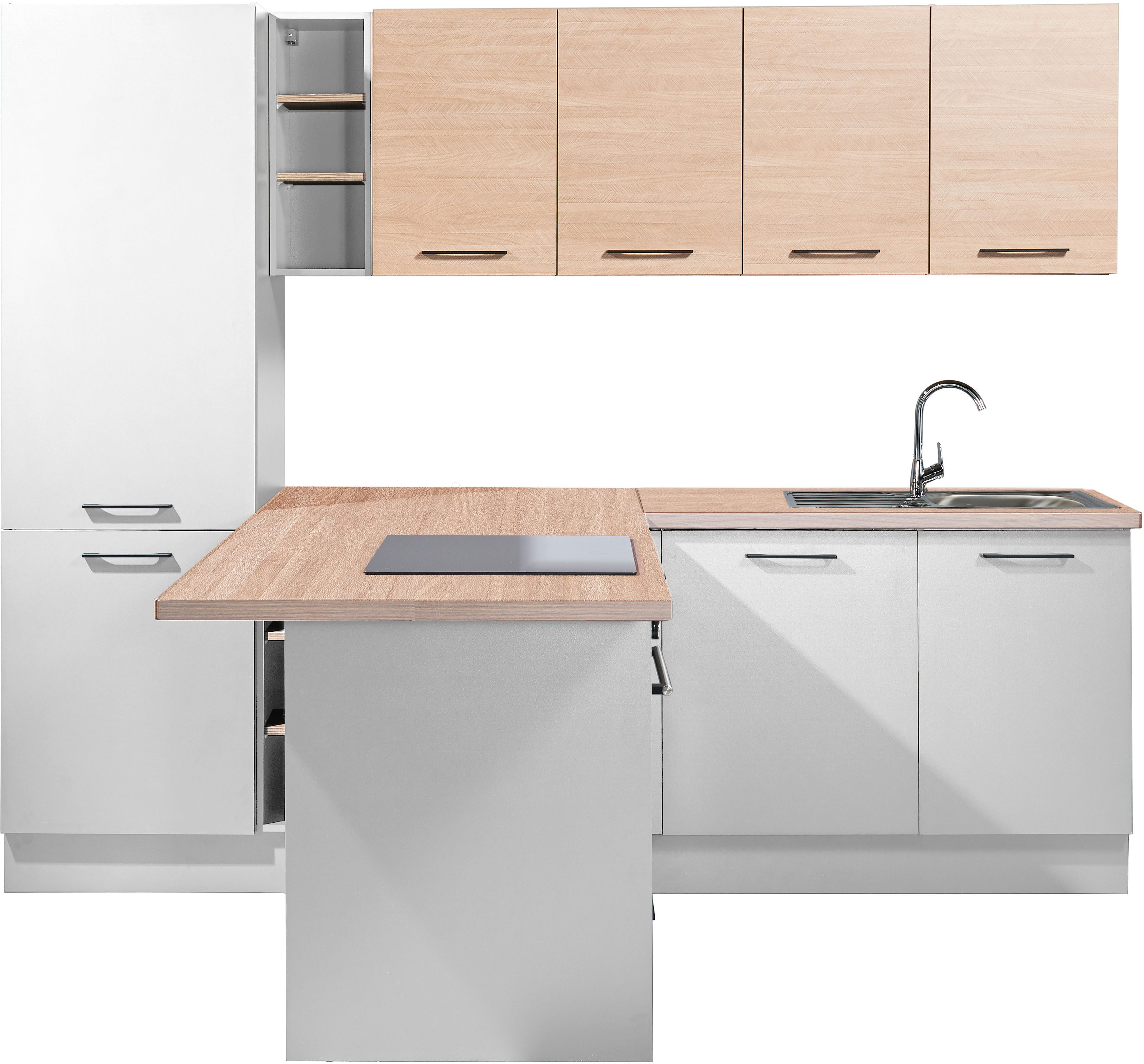 | Wissenswertes | Die Küchenzeile ohne E-Geräte wird auch ohne Einbauspülbecken geliefert L/R montierbar Melaminbeschichtung Metallschubkästen Softclose für Türen und Schubkästen |