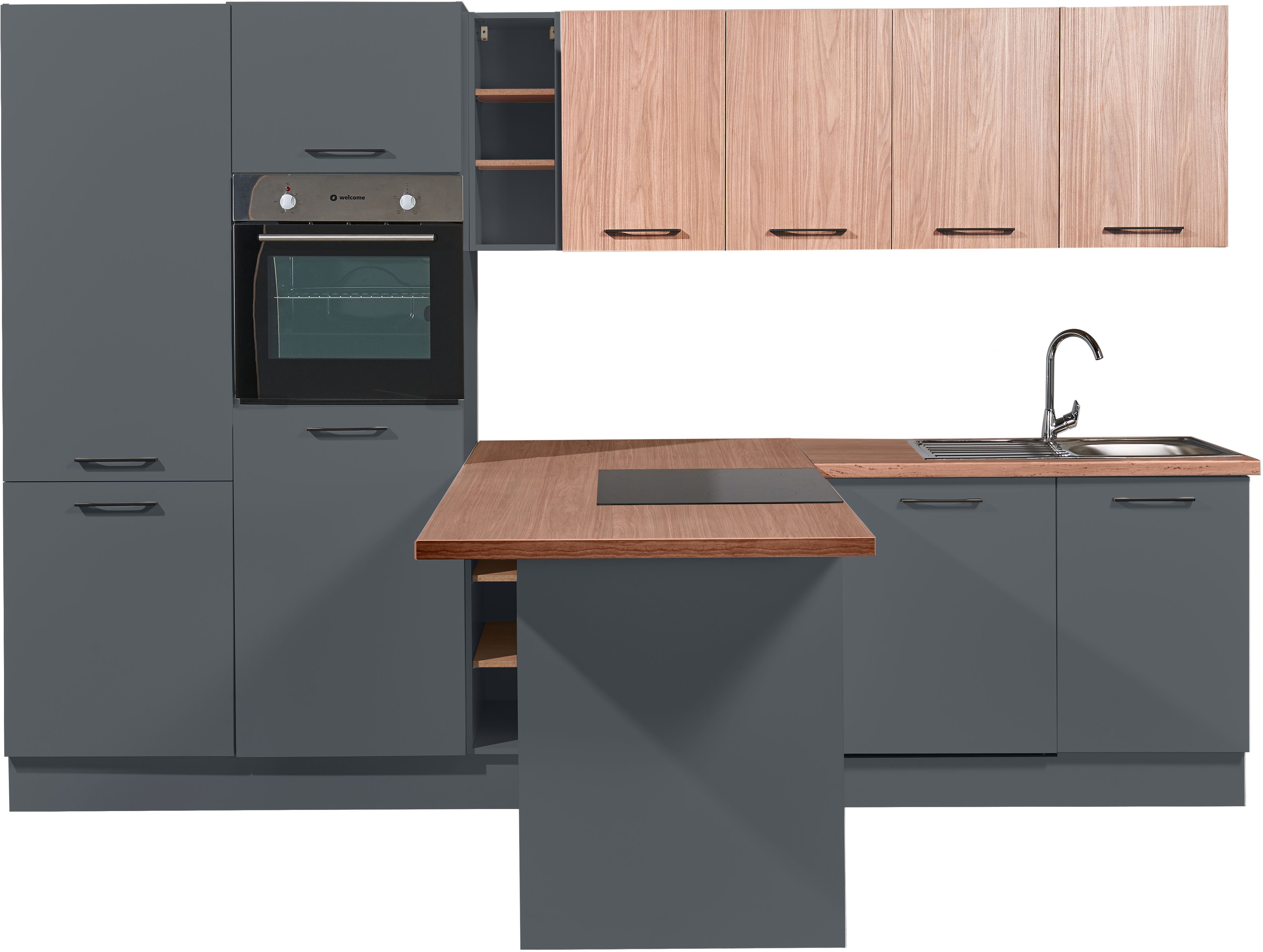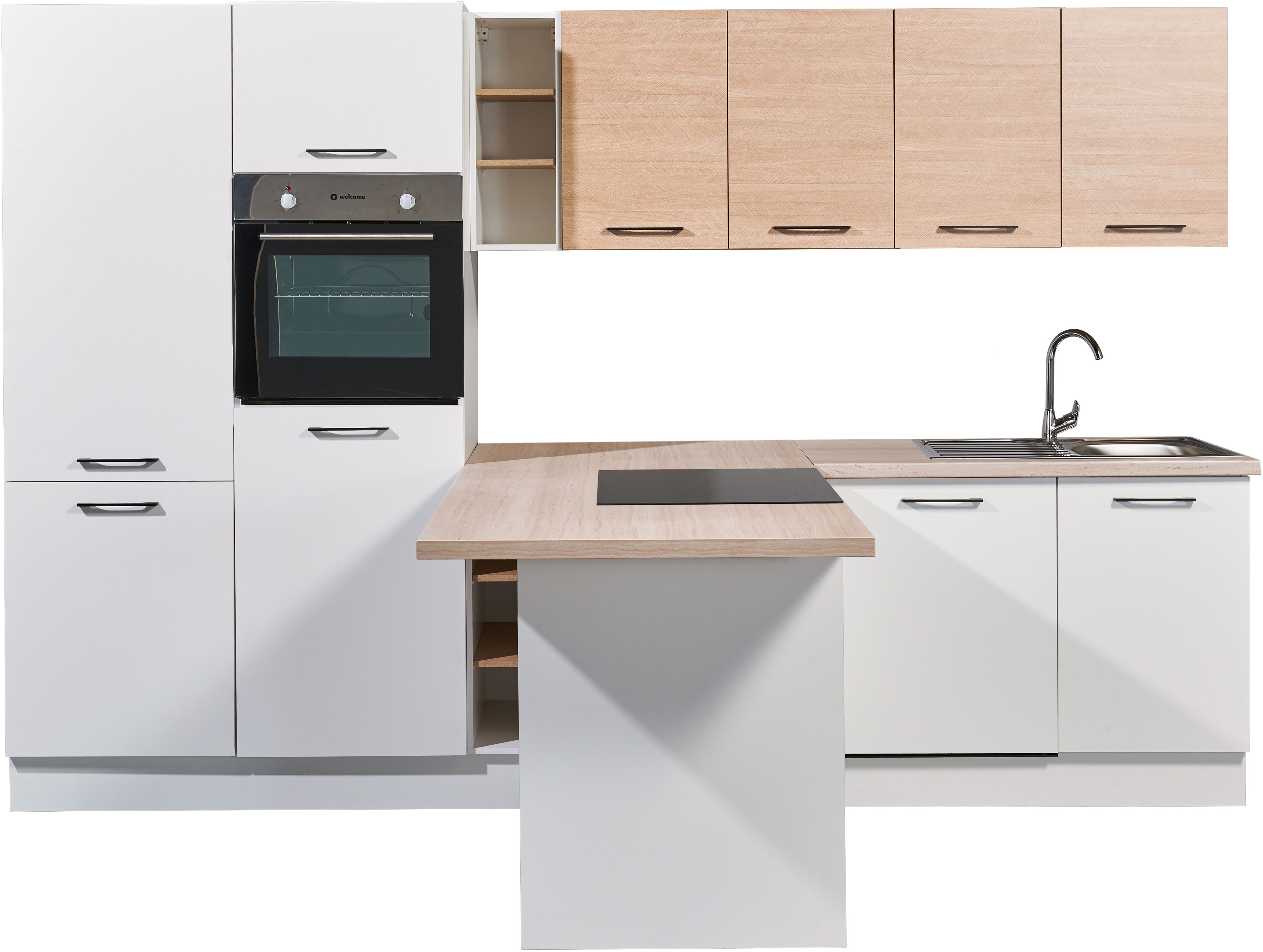 | Wissenswertes | Die Küchenzeile ohne E-Geräte wird auch ohne Einbauspülbecken geliefert L/R montierbar Melaminbeschichtung Metallschubkästen Softclose für Türen und Schubkästen |