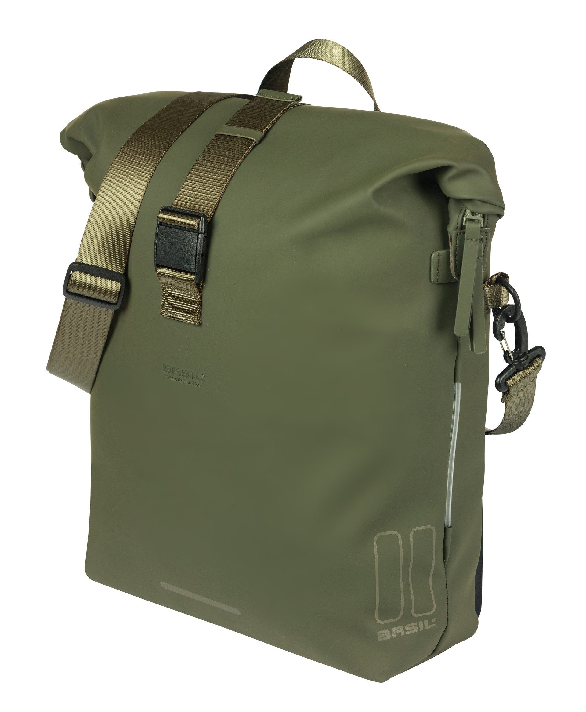 Die Basil SoHo Fahrrad-Umhängetasche ist die Fahrradtasche mit hervorragender Funktionalität. Diese Ausführung verfügt über ein zeitloses Design und kann dich überallhin begleiten, nicht nur auf deinem Fahrrad. So bist du mit dieser stylischen und robusten Fahrrad-Umhängetasche nicht nur für die Straße gut ausgerüstet, du kannst diesen Hingucker auch super als Umhängetasche mitnehmen. Natürlich lässt sich diese Fahrrad-Umhängetasche auch problemlos mit dem MIK Studs-System an jedem Fahrrad befestigen. Auf diese Weise vermeidest du einen verschwitzten Rücken. Auch Regen ist kein Problem mehr, denn der wasserdichte Stoff hält alle deine mitgeführten Sachen trocken. Nie wieder etwas verlieren? Der mitgelieferte Organizer erleichtert die Aufbewahrung deiner Sachen. Ideal für einen Laptop, Bücher, ein Smartphone, Stifte und vieles mehr. Sicherheit steht an erster Stelle. Darum ist die SoHo-Tasche mit der Nordlicht Technology* ausgestattet, hierbei handelt es sich um eine LED-Leiste an der Seite der Tasche. Mit einem Klick auf den Druckknopf bist du dann auch bei Dunkelheit besser sichtbar. * Nordlicht Technology kann als Zusatzlicht verwendet werden und ersetzt in keiner Weise die gesetzlich vorgeschriebene Fahrradbeleuchtung.