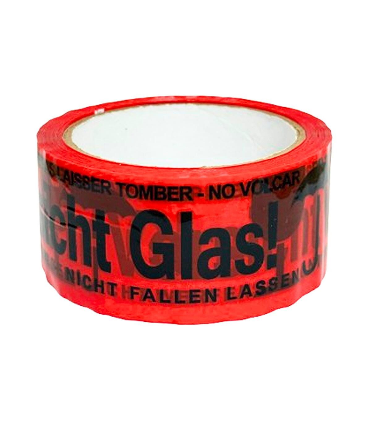 1 Rolle PP-Packband 48mm x 66m – mit rotem Aufdruck „Vorsicht Glas“ – Stark, Sicher & Zuverlässig