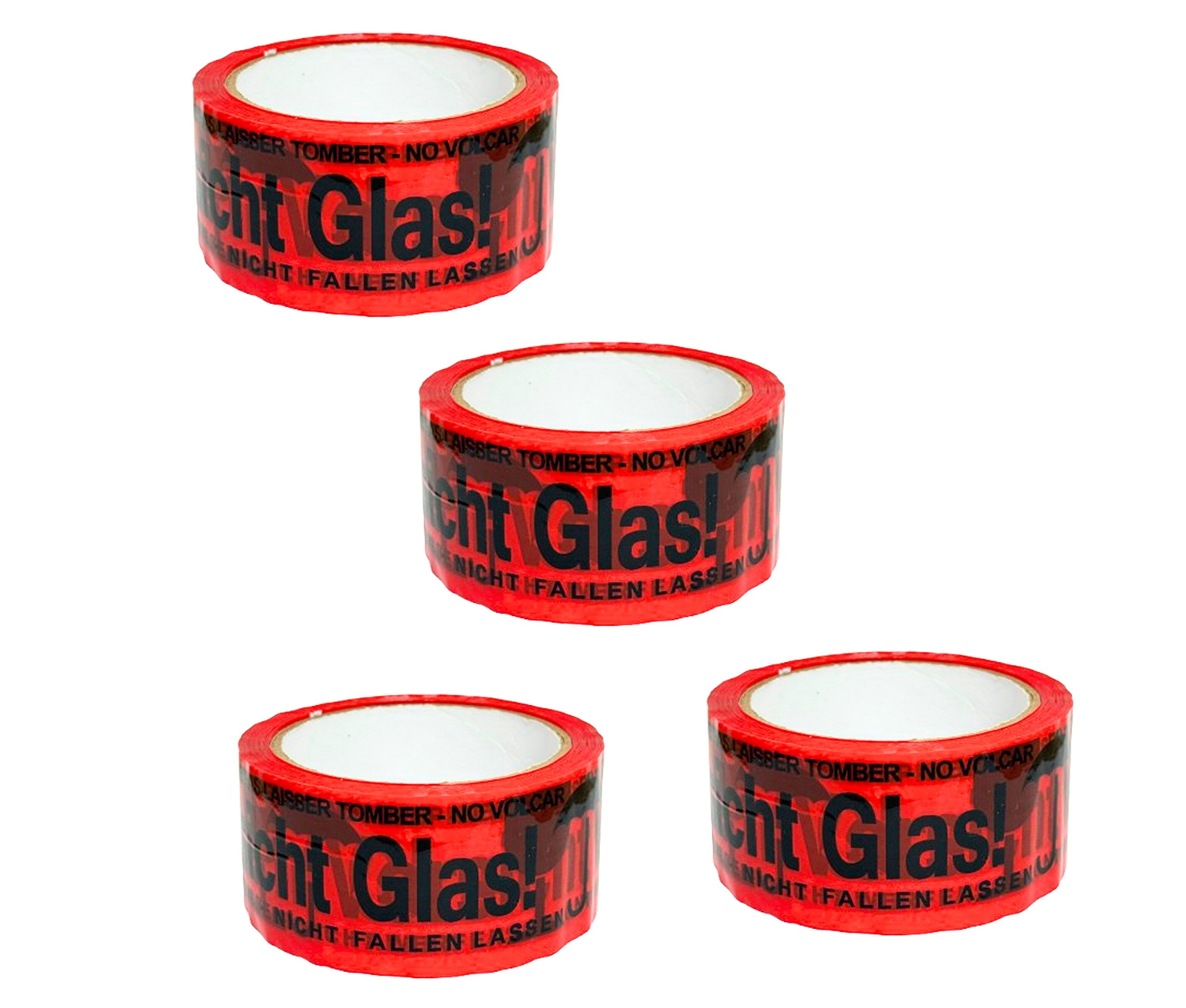 4 Rollen PP-Packband „Vorsicht Glas“ – 48mm x 66m