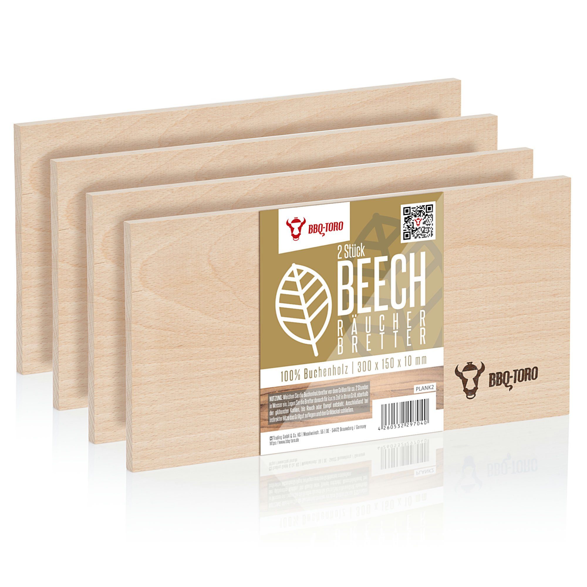 BBQ-Toro Räucherbrett aus 100 % Buchenholz (4 Stück) | 30 x 15 x 1 cm | Grillen