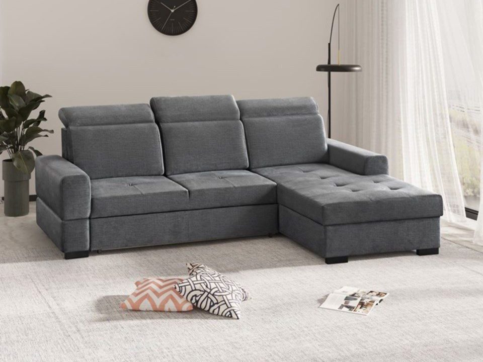 Ein modernes Ecksofa ALEX MINI mit Schlaffunktion ist ein elegantes und bequemes Möbelstück, perfekt für moderne Innenräume. Er ist mit der linken oder rechten Seite der Ottomane erhältlich, wodurch Sie ihn an die Raumaufteilung anpassen können. Das Ecksofa zeichnet sich durch schlichte Linien und Funktionalität aus und sein Hauptvorteil sind verstellbare Kopfstützen, die individuell angepasst werden können und so für maximalen Sitzkomfort sorgen.