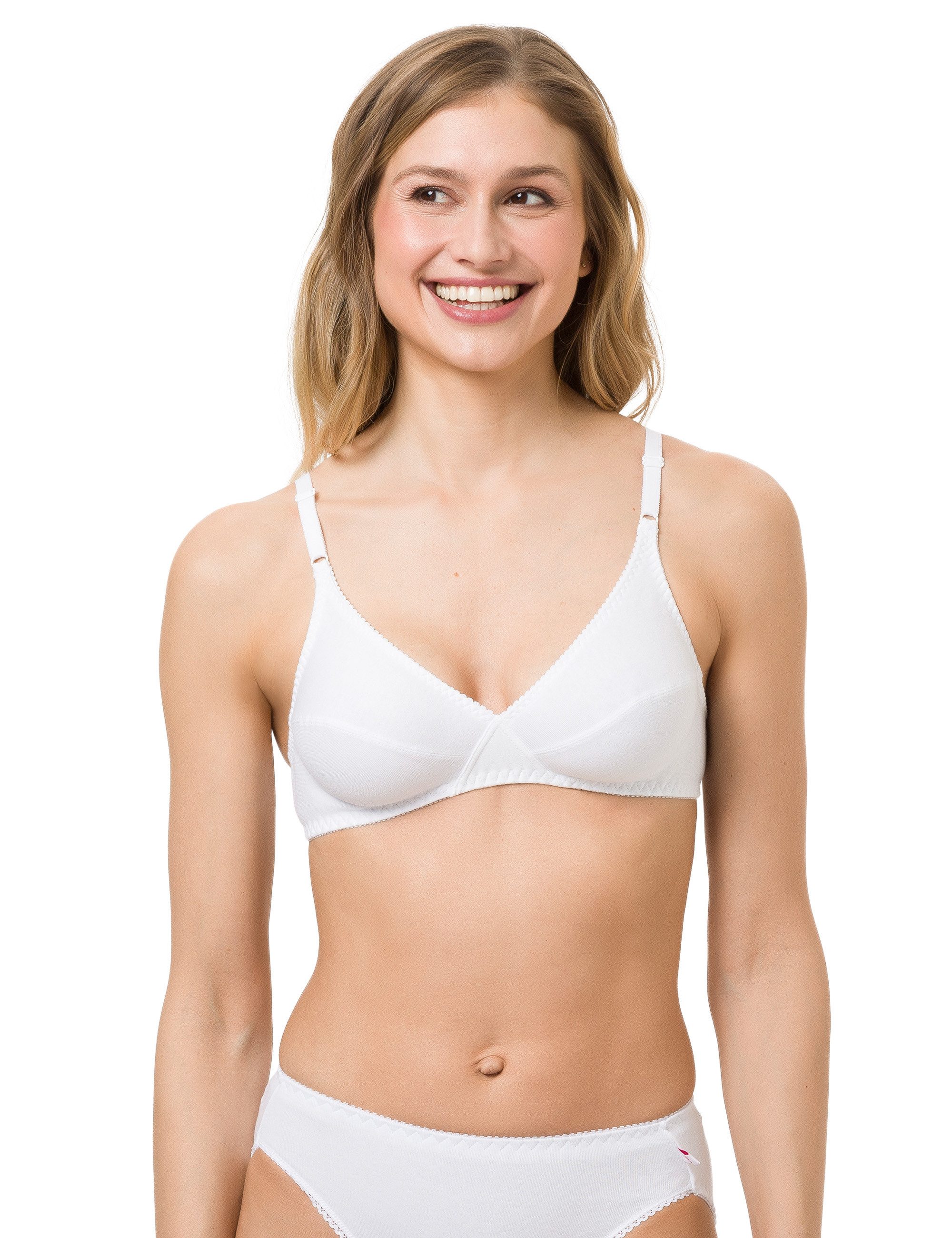 Die genähten Cups mit klassischer Kontur sind ungepolstert. Zusätzlich verfügt der Frauen-BH aus Baumwolle über eine dekorative Borte am Unterbrustsaum, die ihm eine feminine Note verleiht. Der bügellose BH ist in verschiedenen Farben und Größen (70A bis 85 B) erhältlich. Durch den angenehmen Sitz ist der einfarbige BH das perfekte Basic zum Wohlfühlen für jede Frau und darf in keinem Kleiderschrank fehlen!