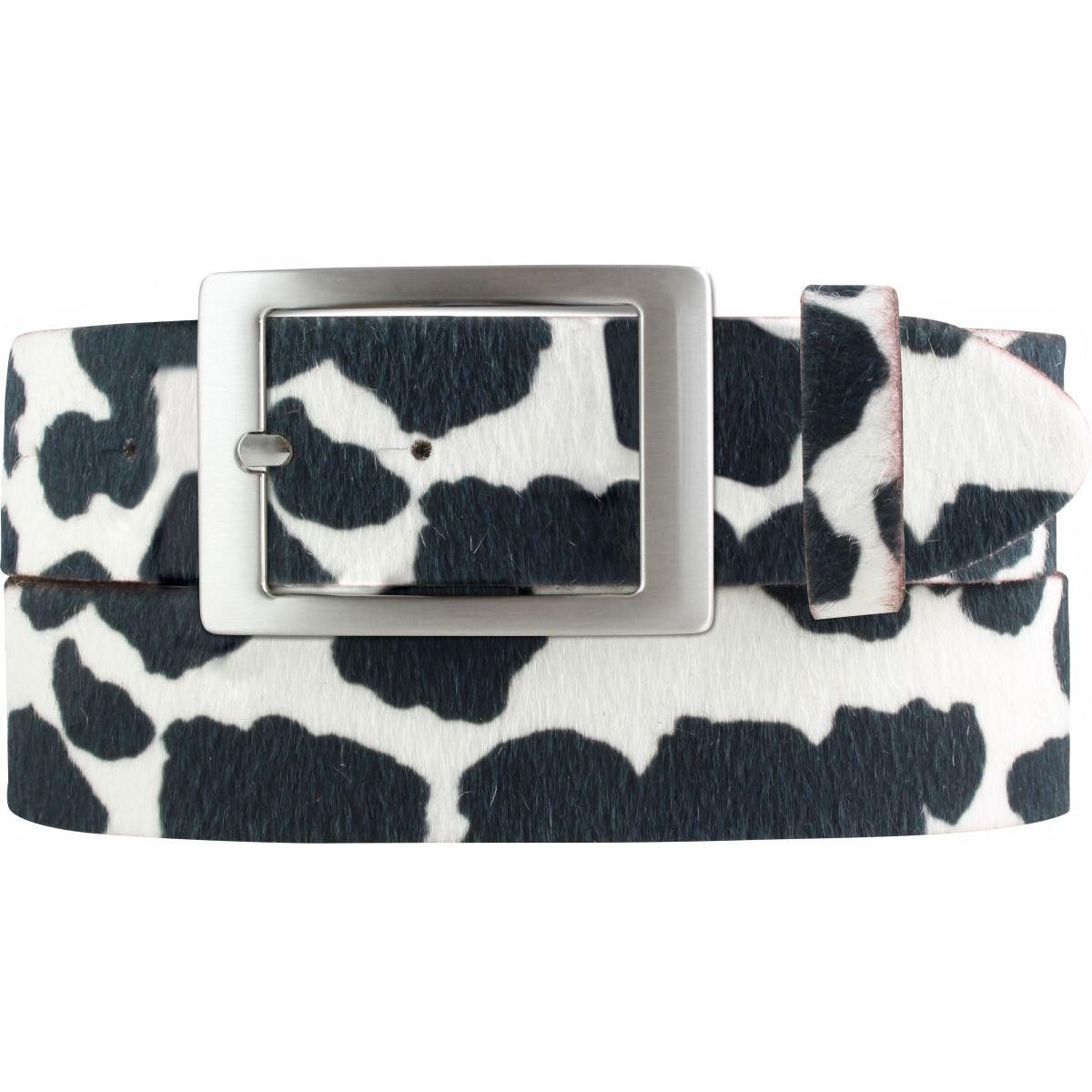 Bei diesem 4,0 cm breiten Gürtel gefertigt aus hochwertigem Cow-Fur aus den Niederlanden, mit geglätteten und geschwärzten Kanten, trifft Qualität auf Mode. Für den besten Tragekomfort hat dieser Gürtel ein samtartiges Spaltleder Futter in der Innenseite. Der Gürtel aus echtem Leder kann sowohl von Damen auf dem Kleid oder der Hose als auch von Herren auf der Jeans oder Chino getragen werden - der perfekte Begleiter für jedes Event, das Büro oder als Freizeit-Accessoire. Die massive Dorn-Schließe aus Metall (Zamak) hat die Farbe Silber Matt.
