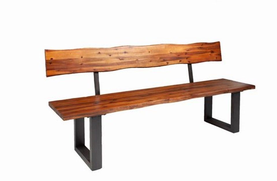 Die Sitzbank Akazie mit Baumkante und Rückenlehne vereint Natürlichkeit mit modernem Industriedesign. Robust, pflegeleicht und stilvoll – die perfekte Ergänzung für Esstische und gemütliche Wohnbereiche.