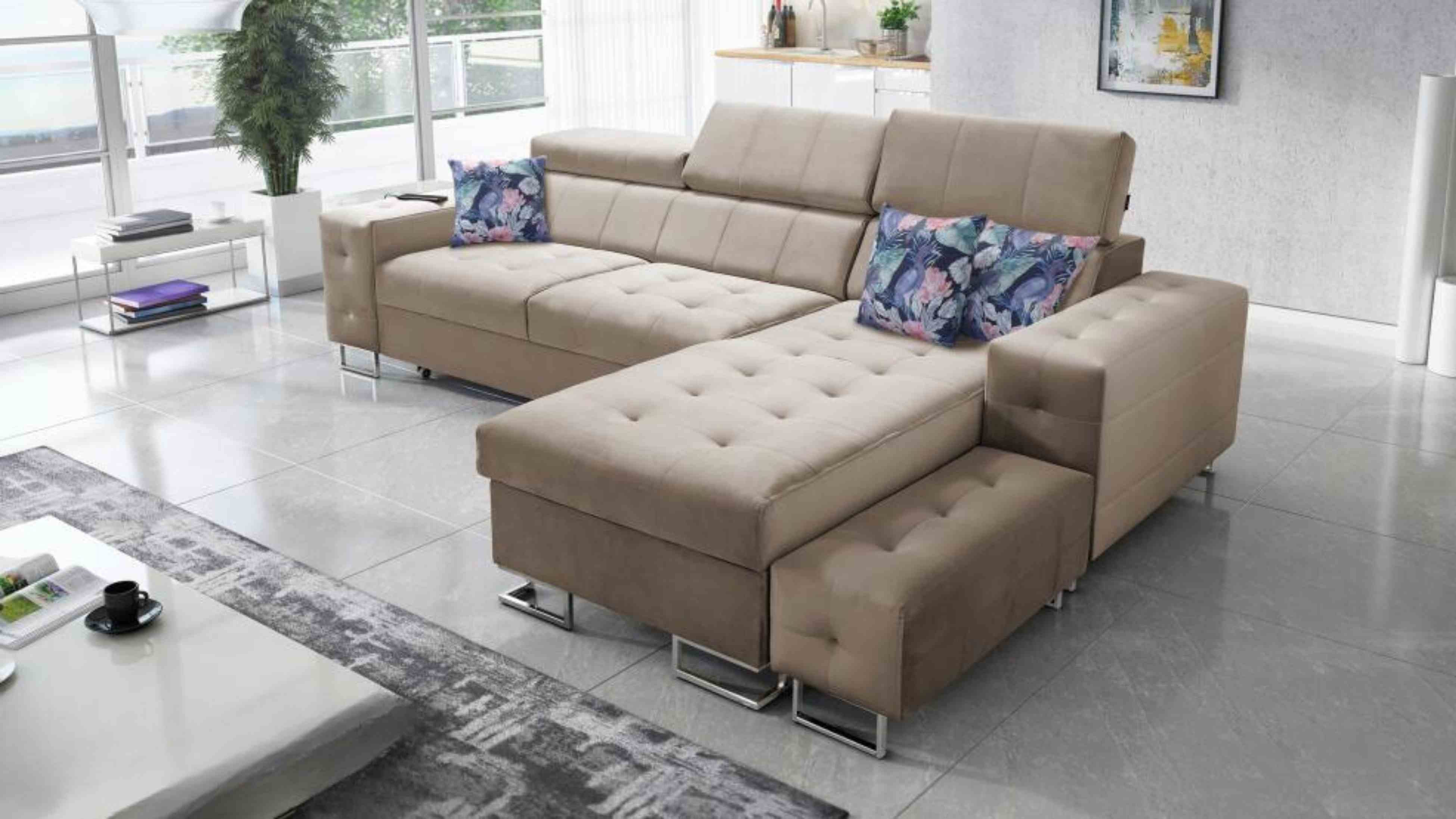 Das Staufach bietet viel Platz für Bettwäsche, Kissen, Decken und andere Haushaltsgegenstände und sorgt so für Ordnung und ein aufgeräumtes Wohnzimmer. Die hochwertige Konstruktion mit Wellenfedern, T-30-Schaum und einem luxuriösen Stoffbezug garantiert außergewöhnlichen Sitzkomfort und Schlafkomfort über Jahre hinweg.