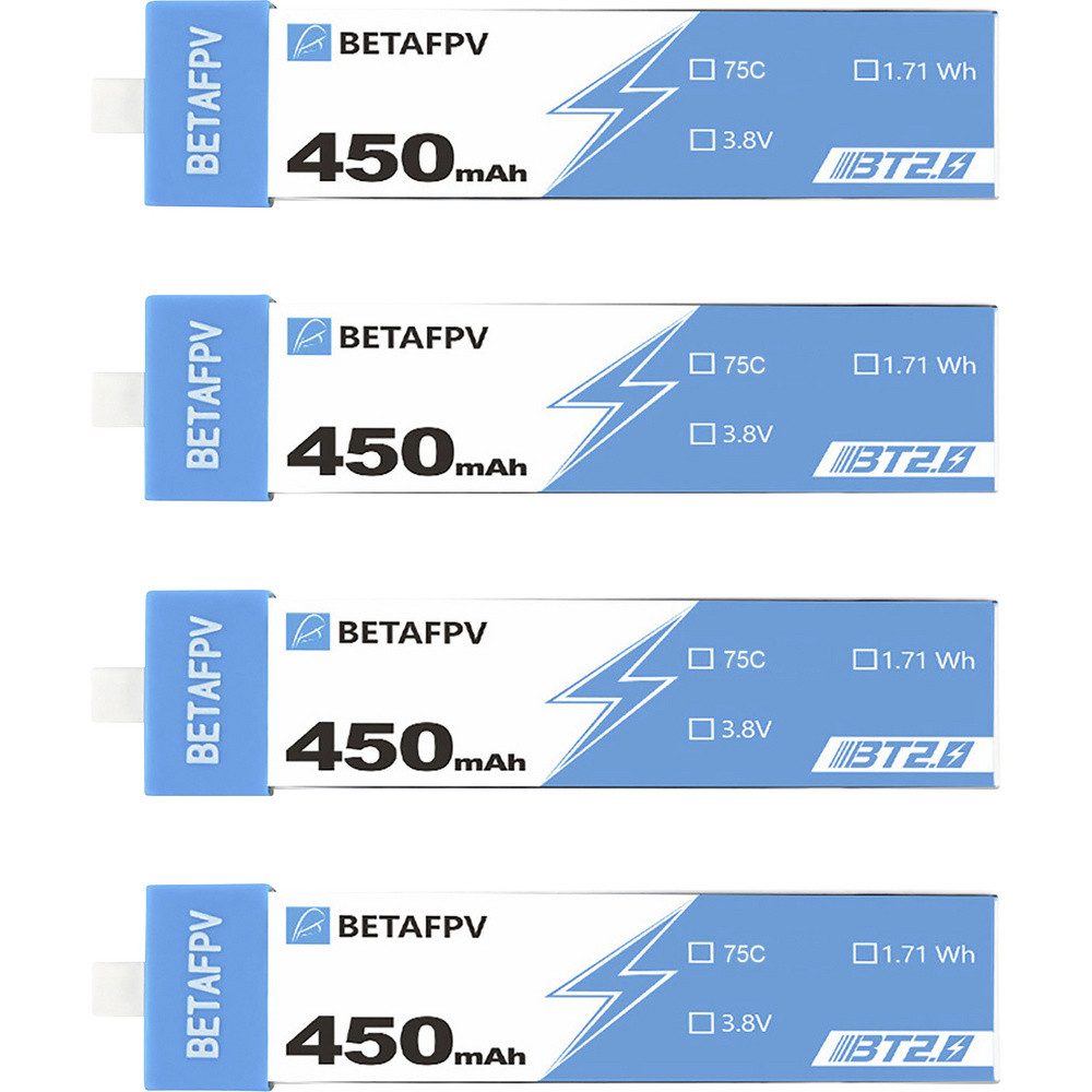 BETAFPV 01030002 BT2.0 450 mAh 1S 75C LiPo-Akku (4 Stück)