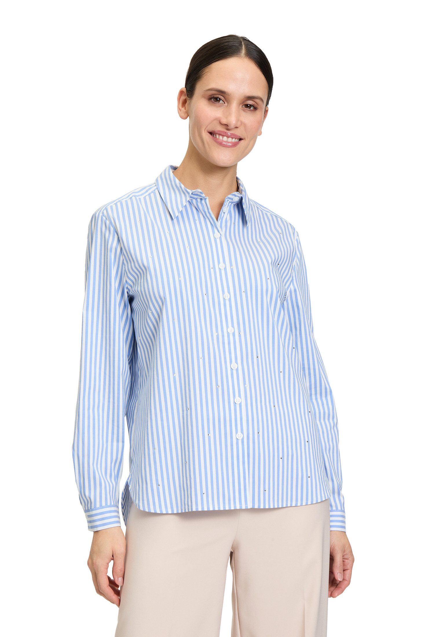 Diese lässige Hemdbluse mit Hemdkragen bringt klassischen Stil in deine Garderobe. Das Streifenmuster verleiht der Bluse einen modernen, frischen Look, während die lockere Form für hohen Komfort sorgt. Mit der Knopfleiste lässt sich die Bluse individuellanpassen und bietet eine einfache Handhabung. Perfekt für legere Freizeit-Outfits, lässt sich die Bluse vielseitig kombinieren und verleiht jedem Look eine entspannte Eleganz.