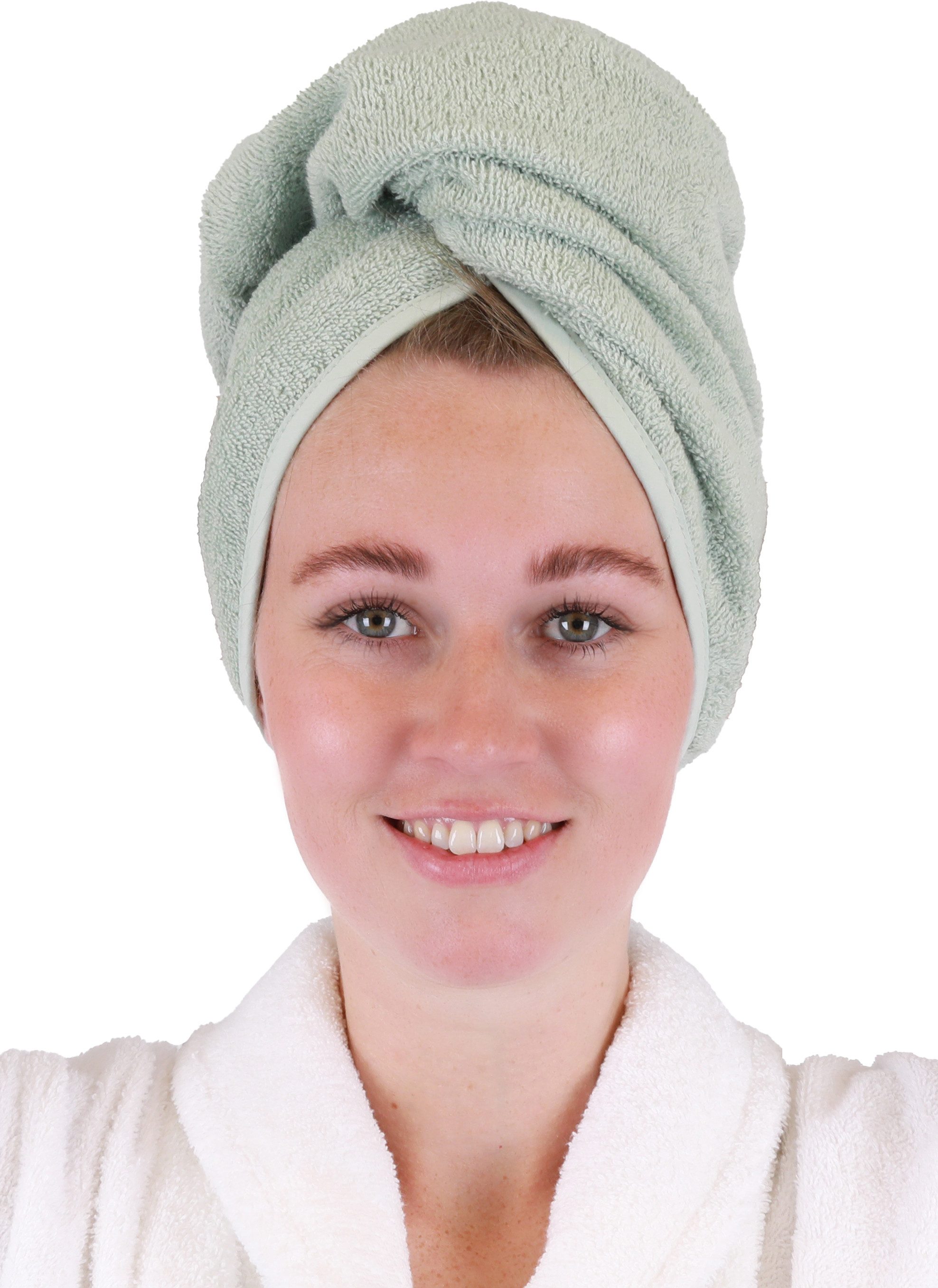 Betz Frottee Turban Haarturban mit Knopf Der Haarturban besteht aus 100% Baumwolle mit einem Gewicht von 360g/m². Mit dem Baumwoll-Turbantuch trocknen Sie Ihre Haare auf schonende Weise. Der praktische Knopfverschluss sorgt zudem für optimalen Halt. Der Haarturban ist geeignet für kurze sowie auch für lange Haare für Damen, Herren und Kinder. Waschbar bei 60 Grad. Der Haarturban ist durch seine Form besonders bequem in der Anwendung und garantiert eine einfache Haartrocknung sowie einen hohen Tragekomfort. Die kuscheligen Turbantücher sind in 6 verschiedenen Farben erhältlich.