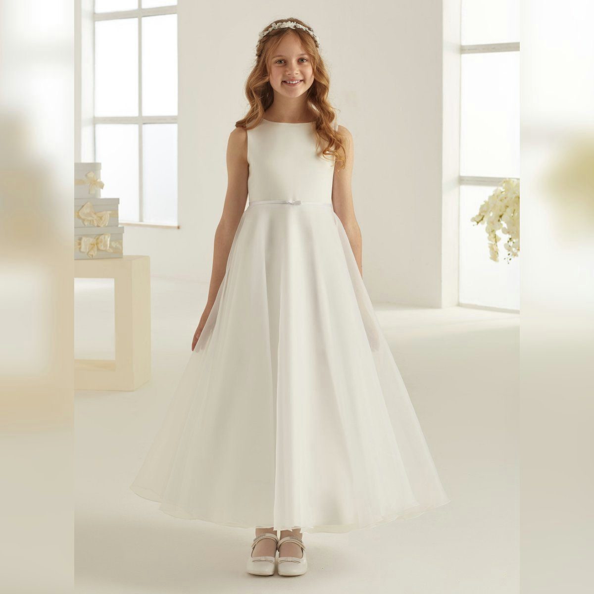 Das entzückende Kommunionkleid ME1900 von Bianco Evento verfügt über kurze Ärmel und ist in den eleganten Farben Weiß oder Ivory (Creme) erhältlich. Hergestellt aus hochwertigem Satin und zarter Organza, überzeugt dieses Kleid mit seiner edlen Materialwahl. Ein niedlicher Satin-Gürtel in Ivory oder Weiß rundet das Erscheinungsbild perfekt ab. Ivory, ein Weißton mit einem sanften Beigeschimmer, wird gemeinsam mit Weiß in der christlichen Tradition als Farbe der Ewigkeit betrachtet. Ein nahezu unsichtbarer Reißverschluss auf der Rückseite ermöglicht ein bequemes An- und Ausziehen des Kleides. Mit dem ME1900 Kleid von Bianco Evento wird sich jedes Mädchen an ihrem Kommunionstag nicht nur wunderschön fühlen, sondern auch in vollkommener Harmonie mit diesem bedeutsamen Anlass erscheinen.