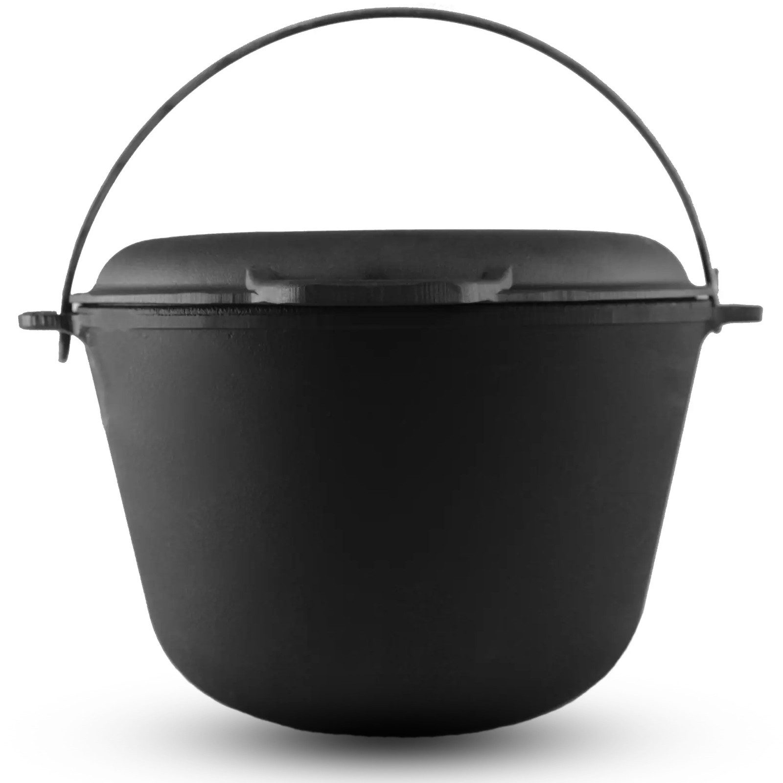Schwenktopf Kazan 8 L aus Gusseisen mit Deckel-Grillpfanne