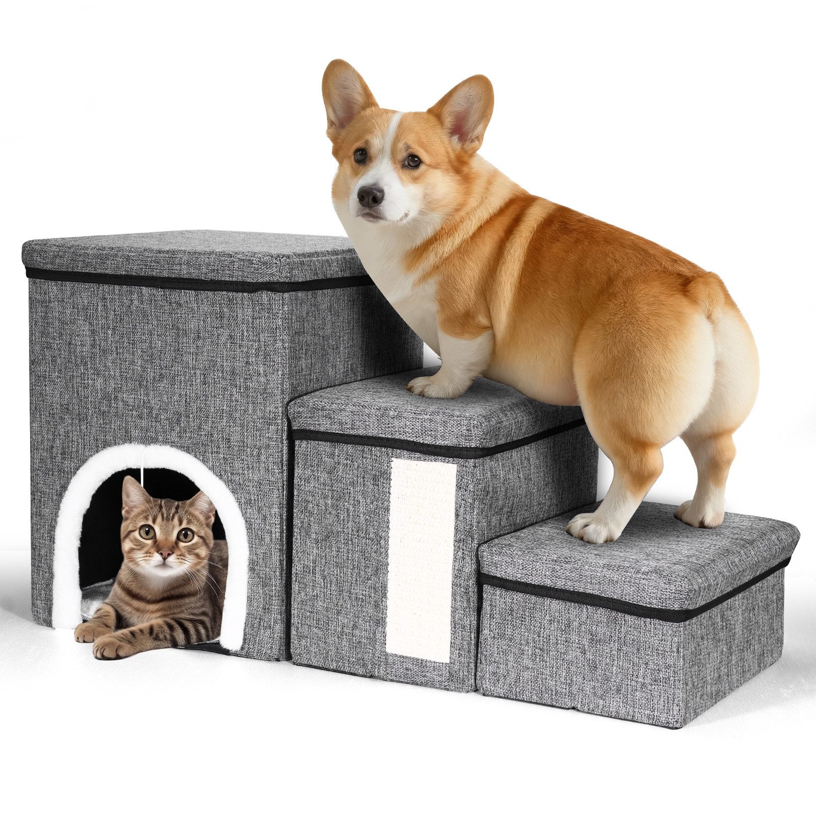 Dreistöckige Treppen und Katzennester werden für beide verwendet: Hundetreppe bett 42 cm bequeme Höhe und dreistöckige Anti-Schlupf-Schritte. Das Oberteil ist geschickt in das geschlossene Katzennest integriert, und die treppen & stufen für hunde/Rastkabinen sind frei umgeschaltet. Bereitstellung einer privaten Rastecke für Katzen oder kleine Hunde
