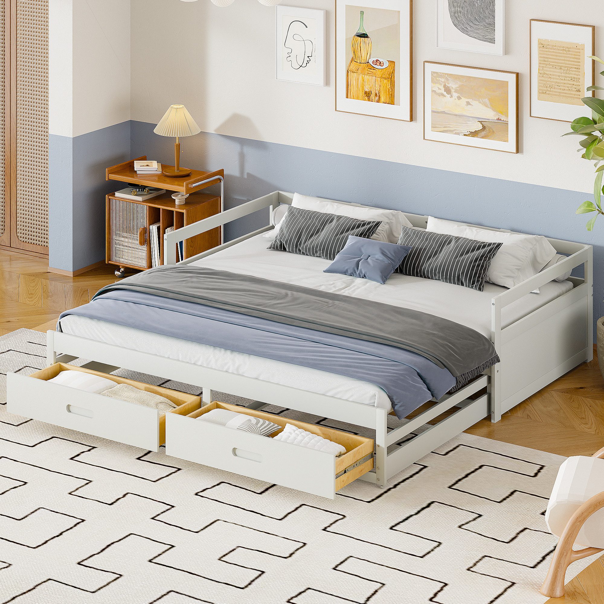 ◈ Mit Stauraum - Dieser Bettrahmen aus Kiefernholz wird mit zwei Schubladen geliefert. Der Boden der beiden Aufbewahrungsschubladen hat vier Rollen, sodass Sie den Raum unter dem Bett reinigen können.