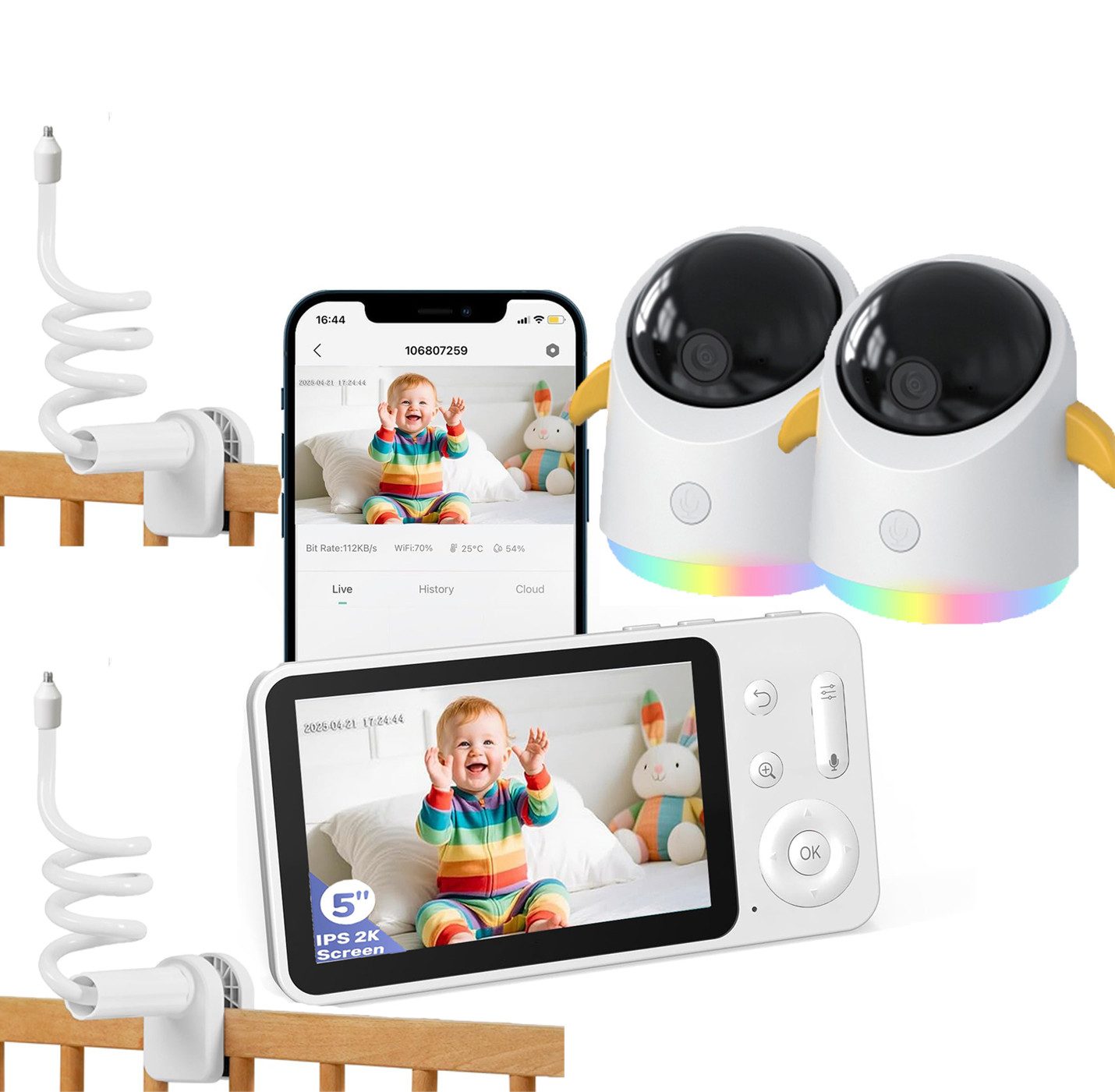 BOIFUN Babyphone mit 2 Kameras 2K/3MP, Intelligentes Nachtlicht, 360 Gard WLAN Video Babyfon mit App, 4×Zoom, Bewegungsverfolgung, IR/RGB Nachtsicht, Weinen/Bewegungs/Geräuscherkennung, Temperaturerkennung Musik und Buntes Nachtlicht